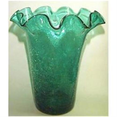 Crackle Glass fluted vase that is in perfect condition. It is hand blown with pontil mark. Made by the Pilgrim Glass Company of West Virginia. Beautiful emerald green color. It is 9"" tall and is 8 3/4"" wide at the top.