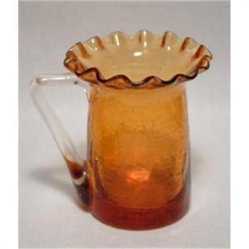 Crackle Glass Miniature Pitcher made by the Pilgrim Glass Company of West Virginia. Frilled top with a reverse seven crystal hand applied handle. All hand blown. Perfect condition. 3 1/2"" tall.