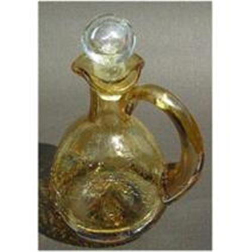 Crackle Glass Cruet with pinched in three sides. Cruets are very hard to come by, especially all in tact with the original stopper. This cruet is all hand made. I believe it was made by Blenko Glass Company because they pinched in a lot of their pieces. 6 1/2"" tall. No damage.