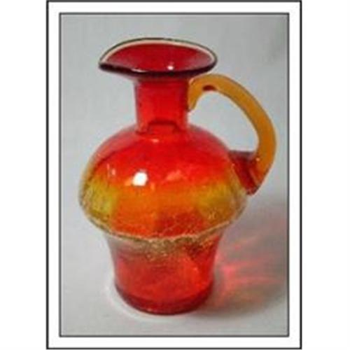 Crackle Glass Pitcher in beautiful amberina. Very unusual shape and the color pattern is also unusual. Hand blown. Sparkling crackle. No damage. 6 3/4"" tall. Very wide in the middle. PRICED FOR QUICK SALE.