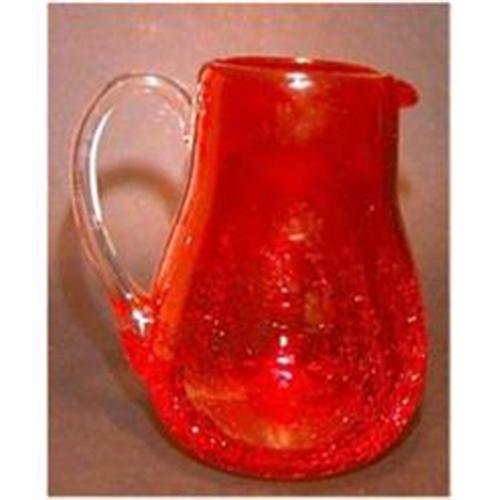 Crackle Glass Pitcher in deep, beautiful ruby colored. Hand blown with pontil scar. What a color. Very fine crackling to pick up the sunlight. Crystal handle. 5 1/2"" tall. Approx. 4 1/4"" wide at its widest. Perfect condition. Extremely collectible color.