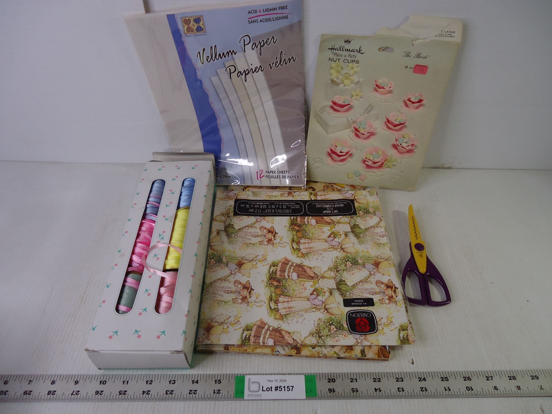 Craft Items-Album Paper,Ribbon, Wrapping Paper, and Scissors