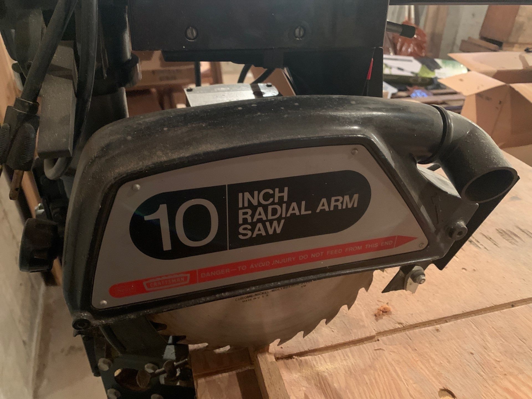 Craftsman 10" Radial Arm Saw with Saw Blades. Very Heavy Please Buyer Responsible for Moving.
