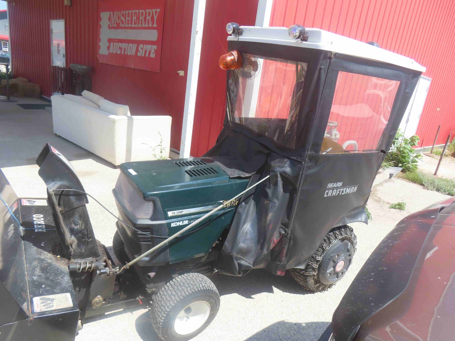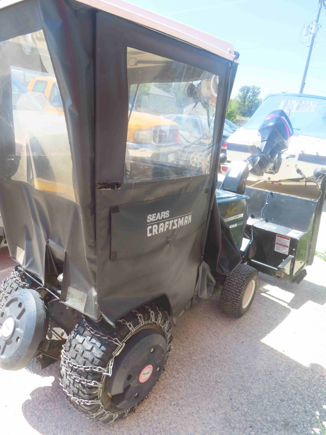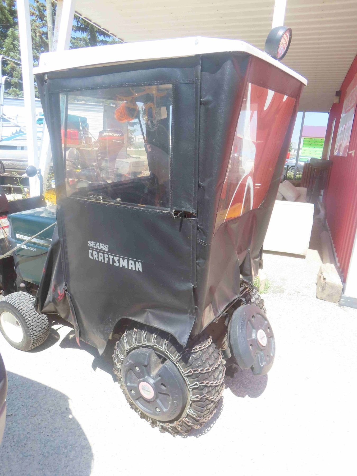 Craftsman 12.5HP Yard Tractor with Cab, Front Mount Snowblower,3 Bag Grass Catcher, Weights/Chains. Been Sitting, Runs Rough. Needs Tune Up.