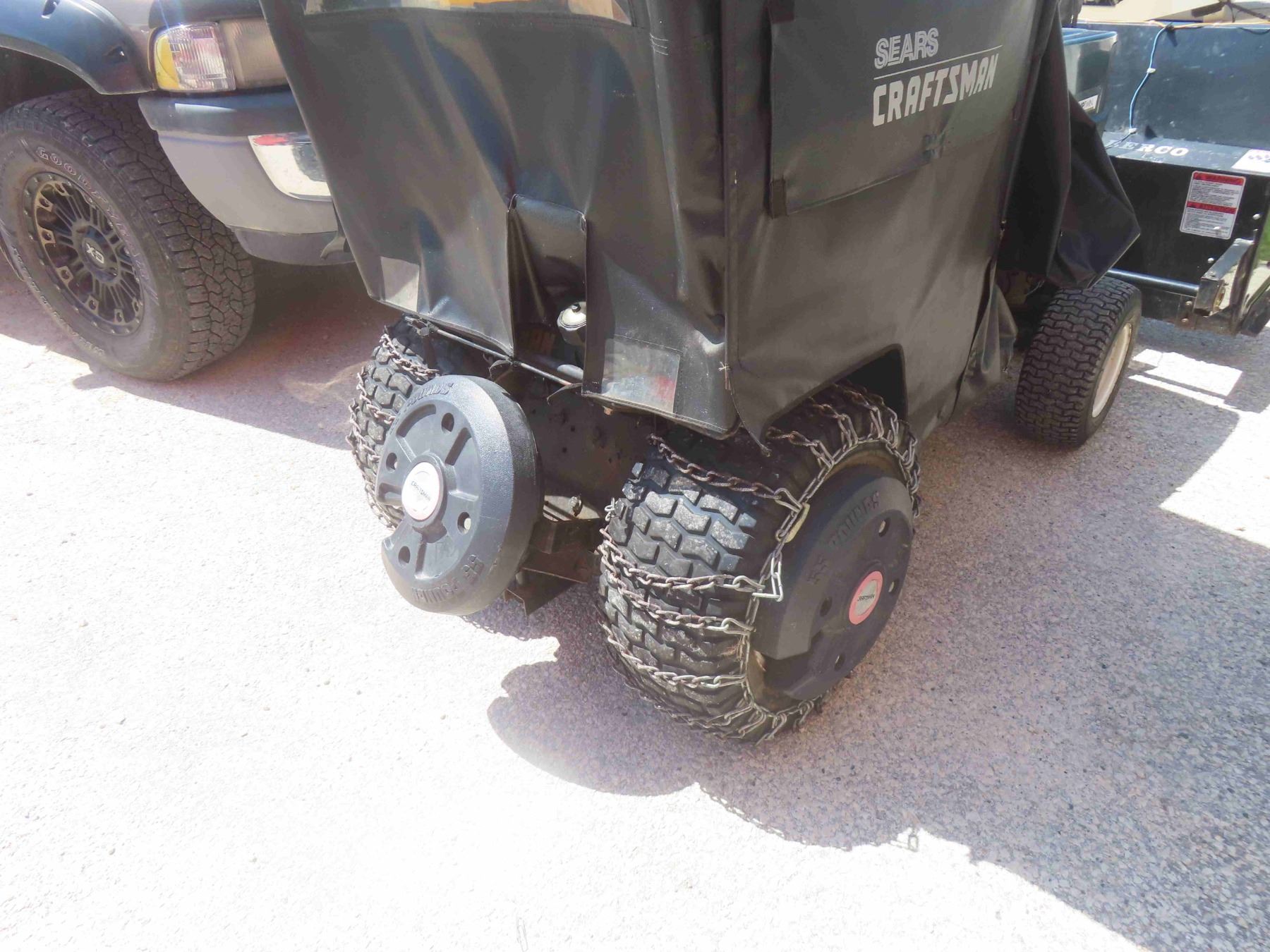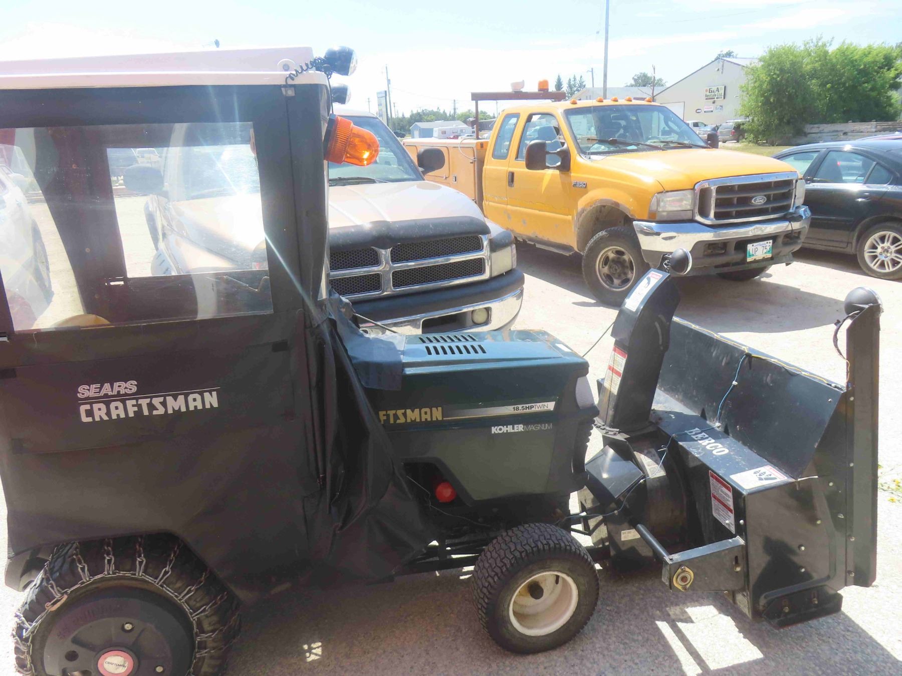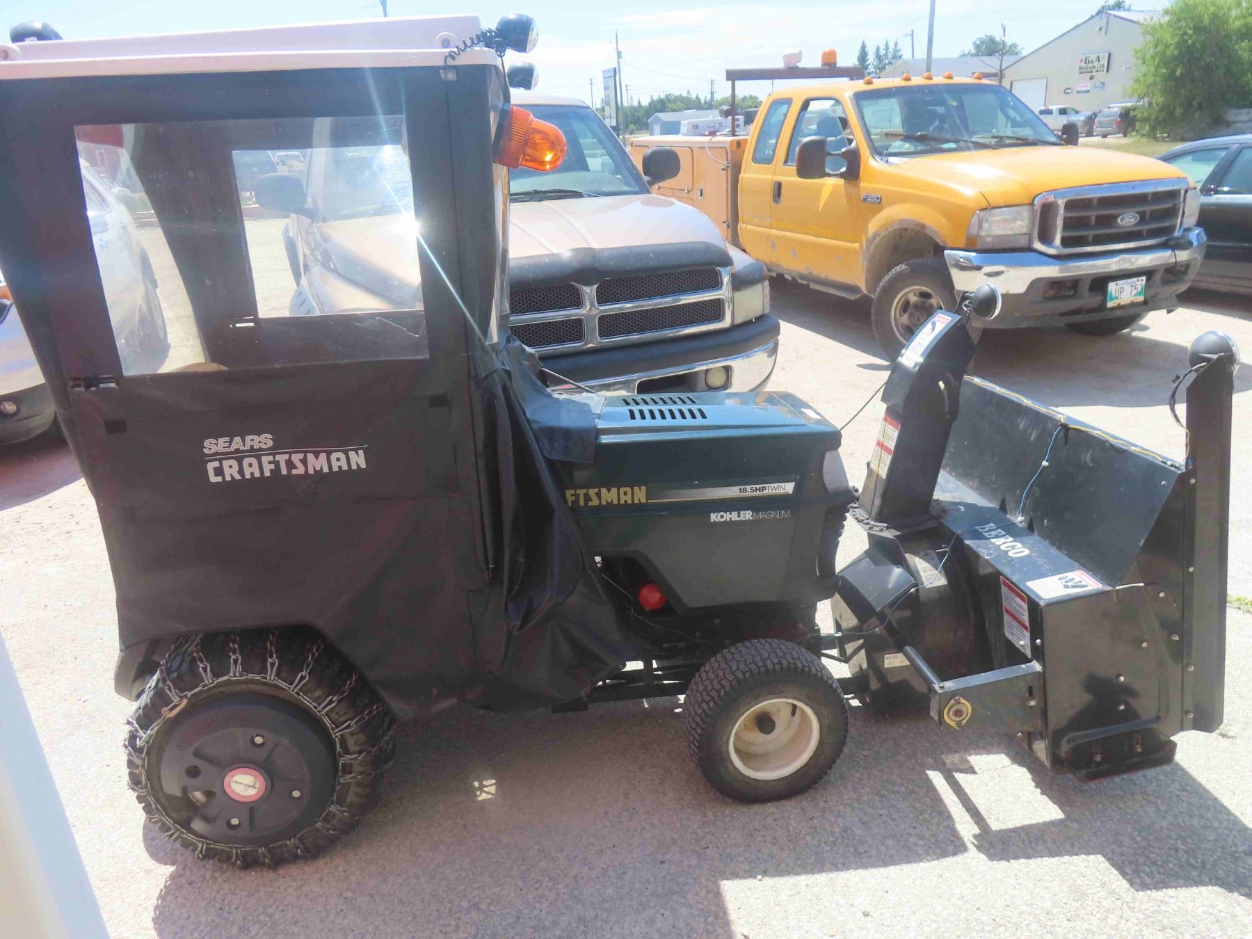 Craftsman 12.5HP Yard Tractor with Cab, Front Mount Snowblower,3 Bag Grass Catcher, Weights/Chains. Been Sitting, Runs Rough. Needs Tune Up.