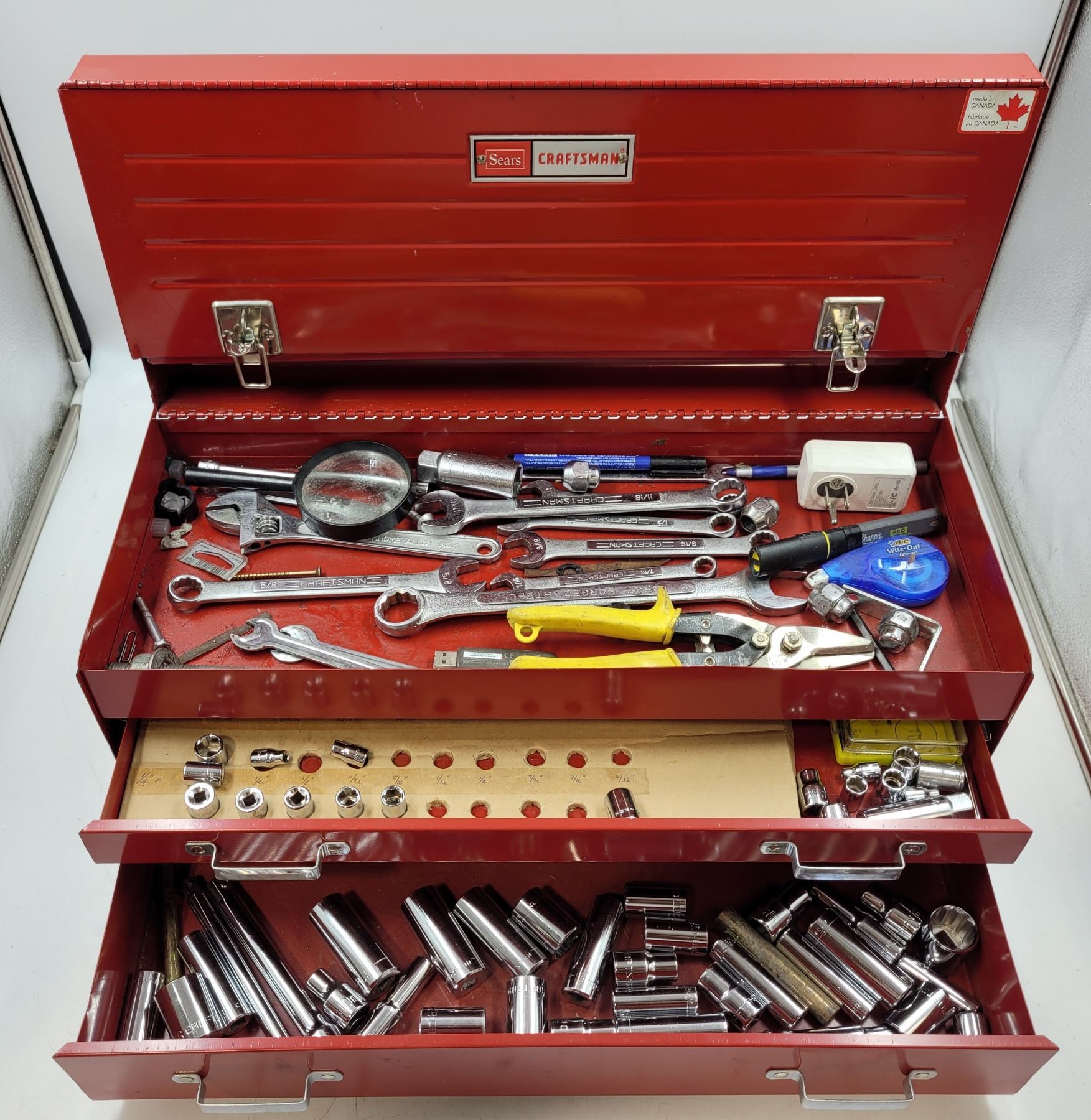 Craftsman 3 Tier Metal Tool box with Assorted Tools and Sockets