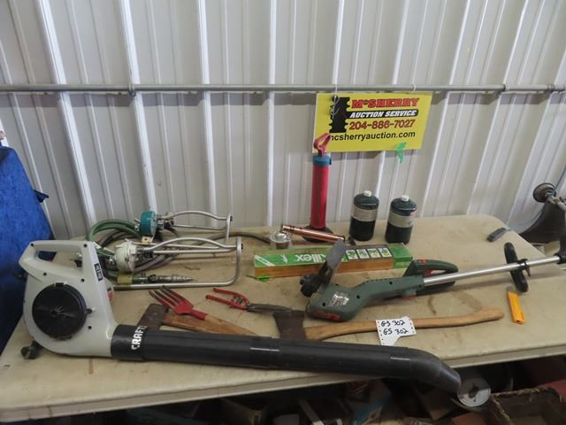 Craftsman Elec Yard Blower, Elec Weedeater, 2 Hatchets, Axe, Plus More