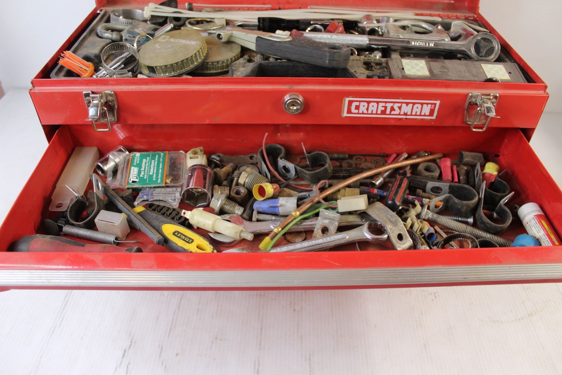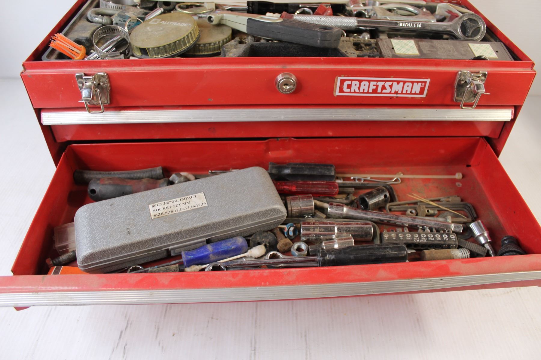Craftsman Red Toolbox with Assorted Sockets, Wrenches, Screwdrivers, - 21" x 9" x 12" Bottom Drawer