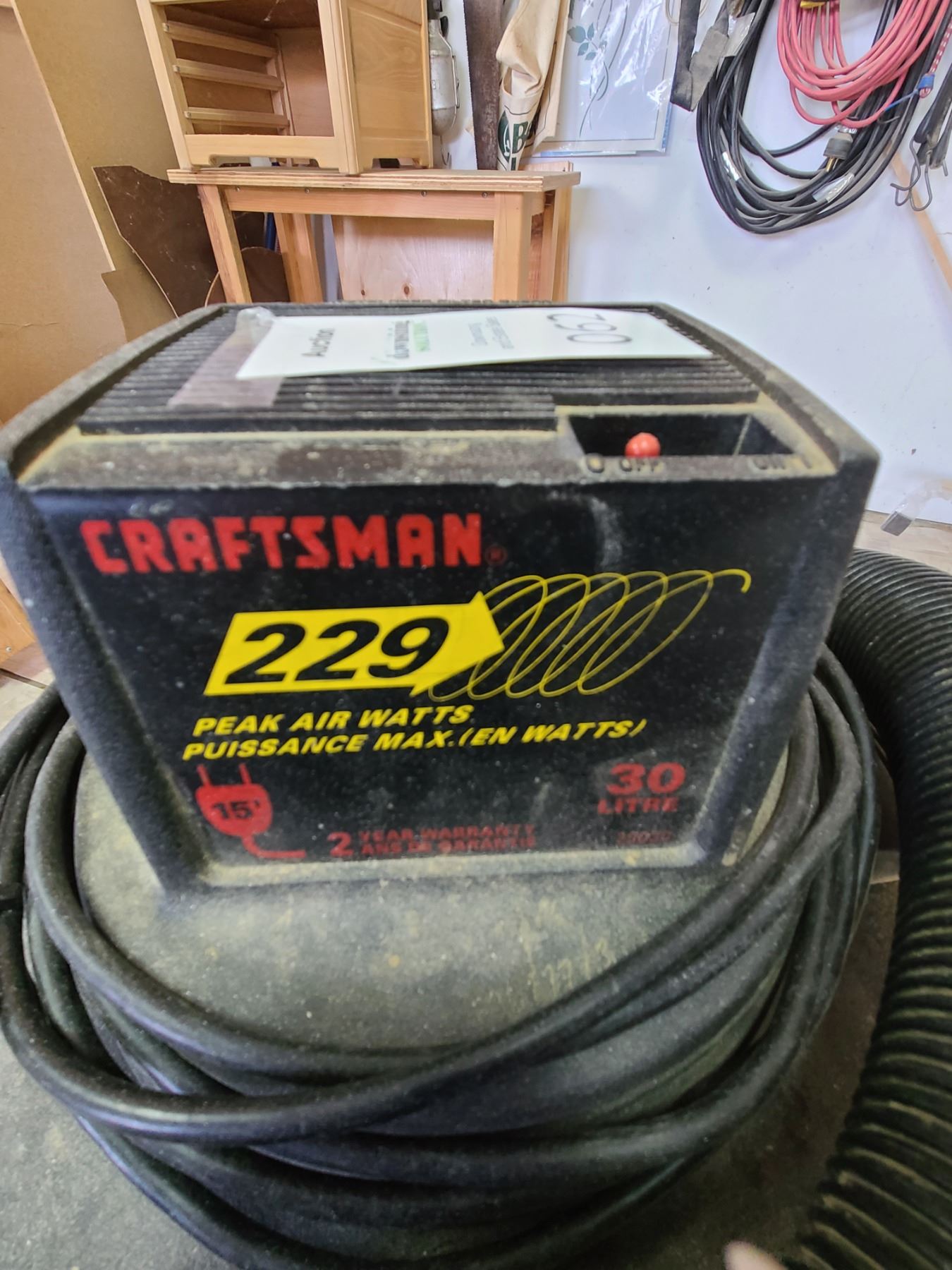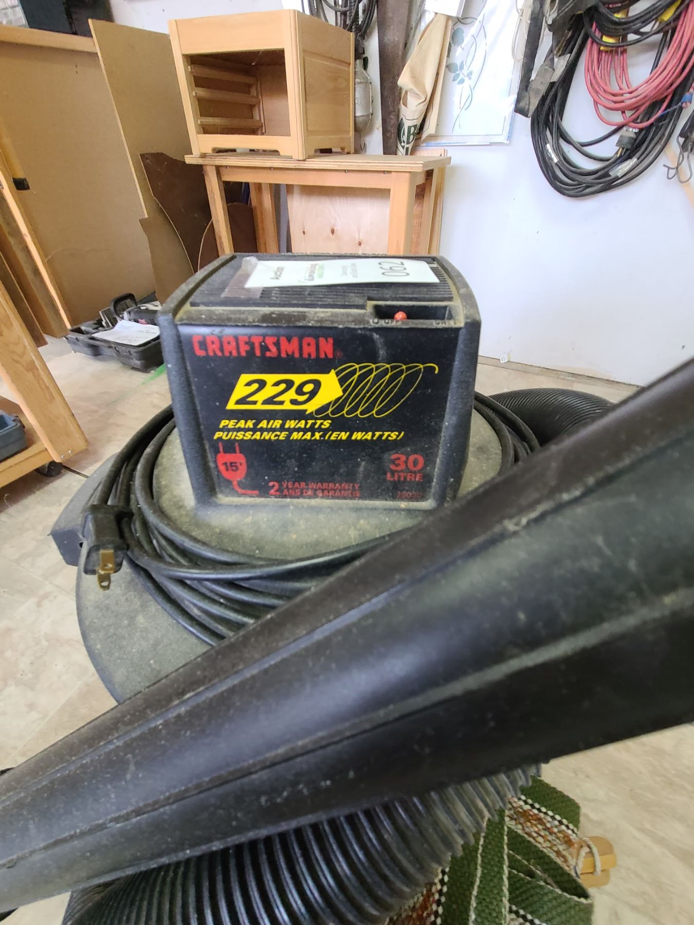 Craftsman shop Vac model 229, 30 litre, untested and more included. Pickup at 9 am.