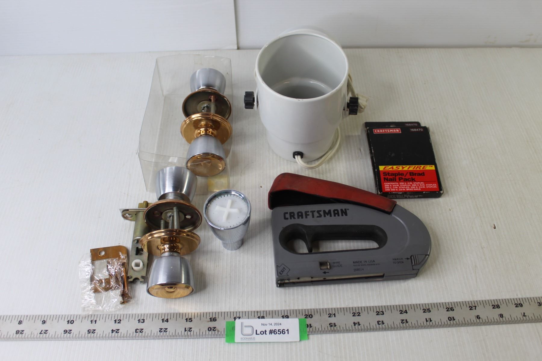 Craftsman Staple Gun With Staples, Mountable Spotlight Lamp - Working, (2) Door Knob Sets, Shower Head