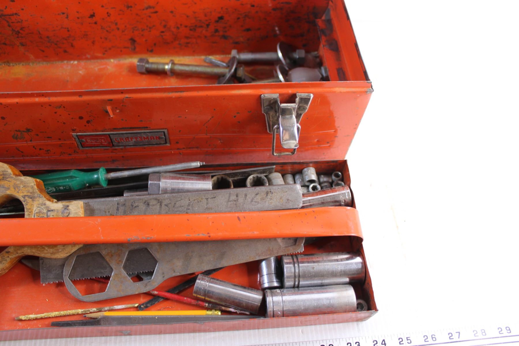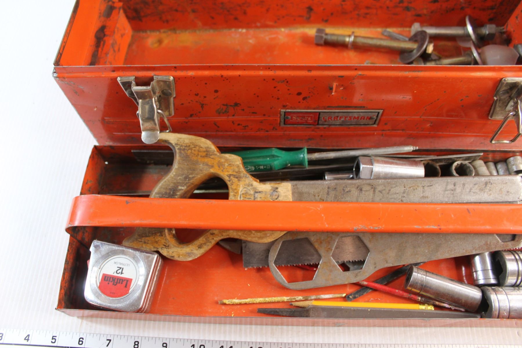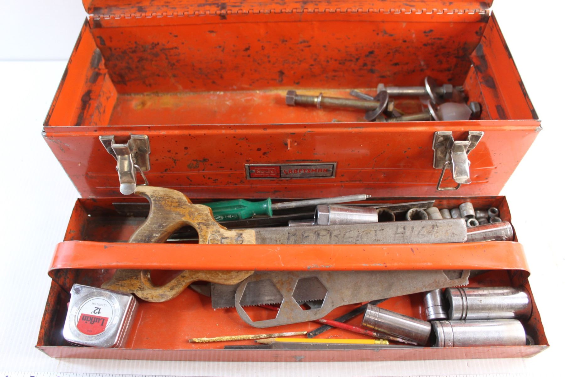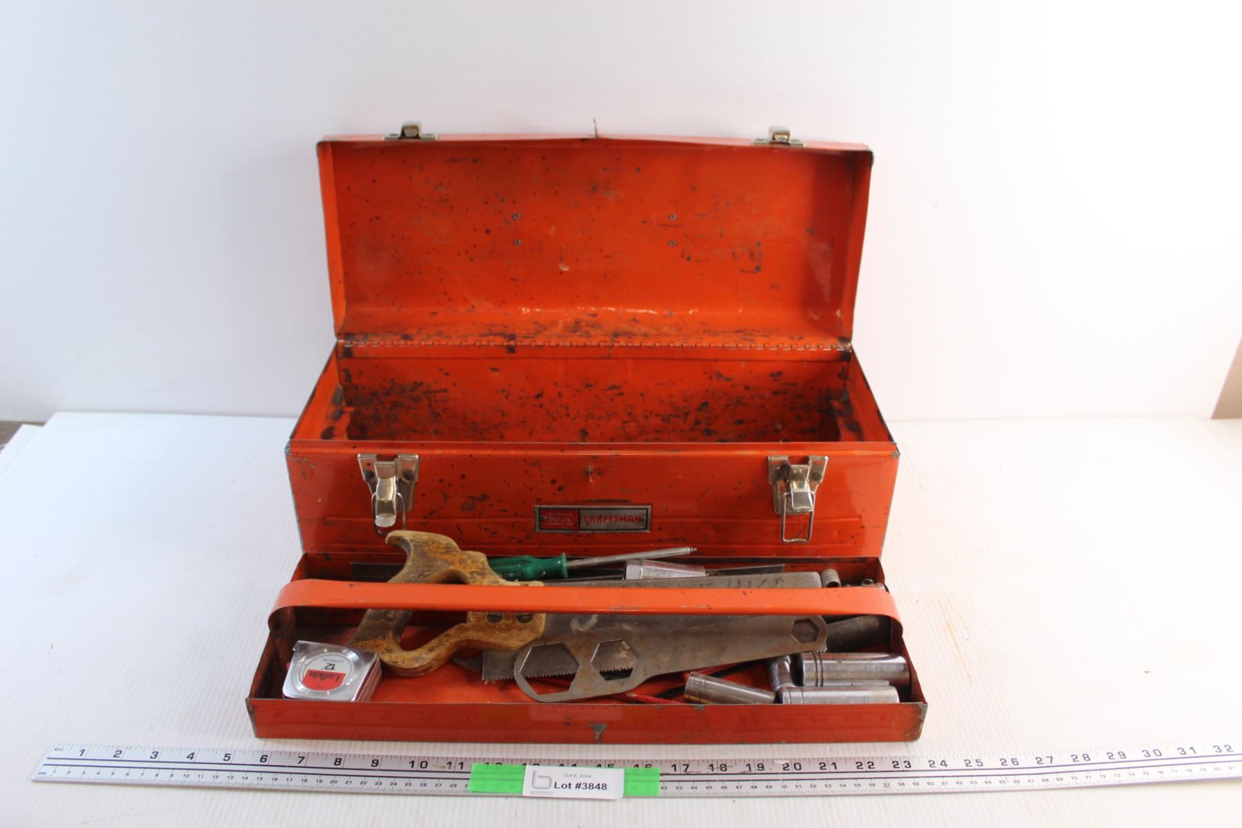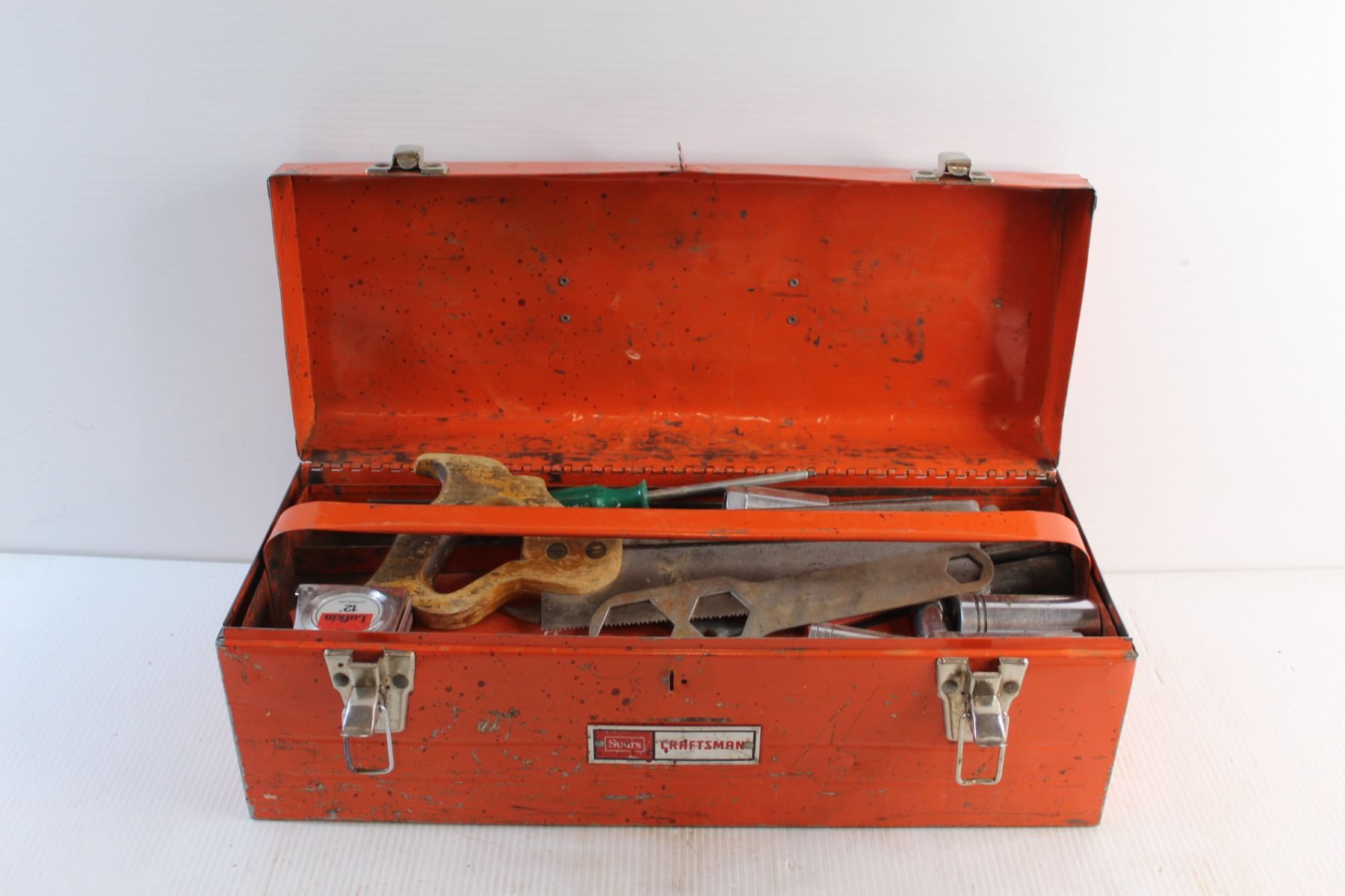 Craftsman Tool Box with Assorted Tools - Handsaw, Sockets, Wrenches, Screwdrivers and Measuring Tape
