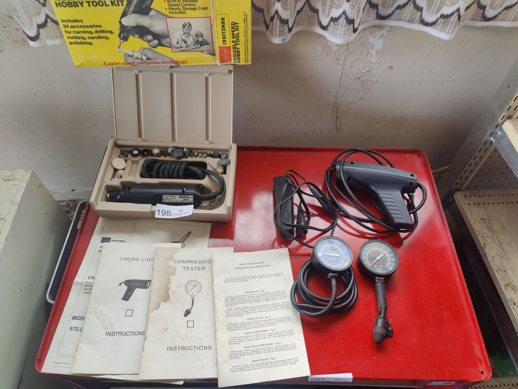 Includes timing light, compression tester and a vacuum and fuel pump tester.