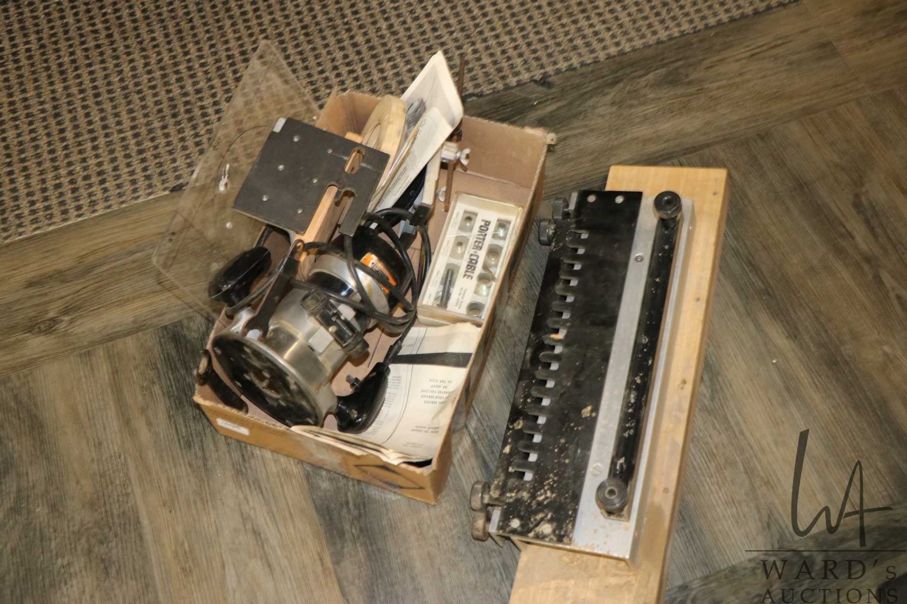 Craftsman commercial router with accessories including dovetail template, Porter-Cable template guid