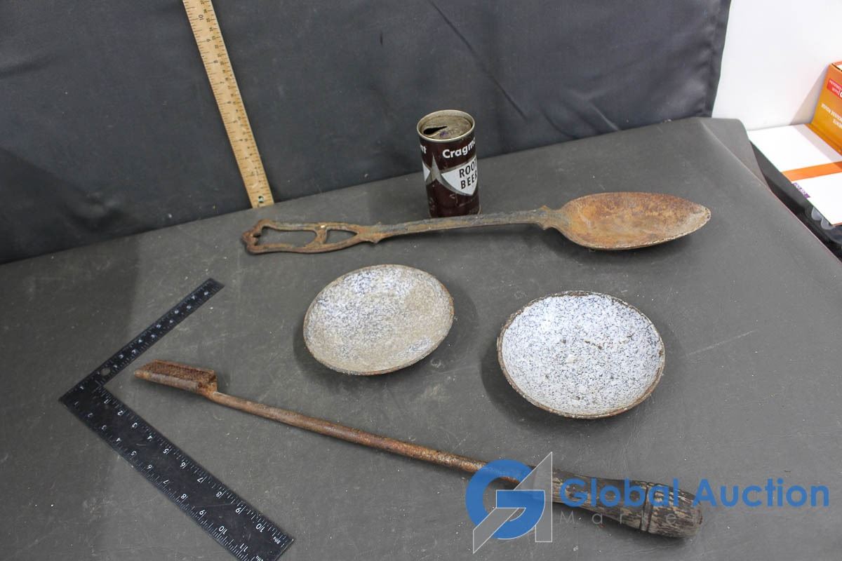 Cragmont Root Beer Can, Enamel Lids & Vintage Tools
