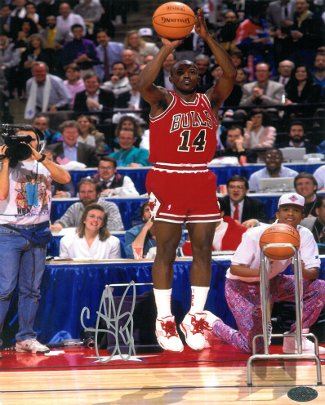 Craig Hodges played in the NBA for 10 seasons and led the league in 3-point shooting percentage three times. He won two NBA championships with the Chicago Bulls, and along with Larry Bird, is only one of two players to win three consecutive Three Point Contests at the National Basketball Association All-Star Weekend, winning the competition in 1990, 1991, and 1992. Hodges also holds the Three Point Contest records for the most consecutive shots made with 19, set in 1991, and the most points scored in a single round at 25, set in 1986. Craig Hodges has hand signed this Chicago Bulls 3 Point Contest 8x10 Photo. Leaf Authentic Hologram and Certificate of Authenticity from Athlon Sports.