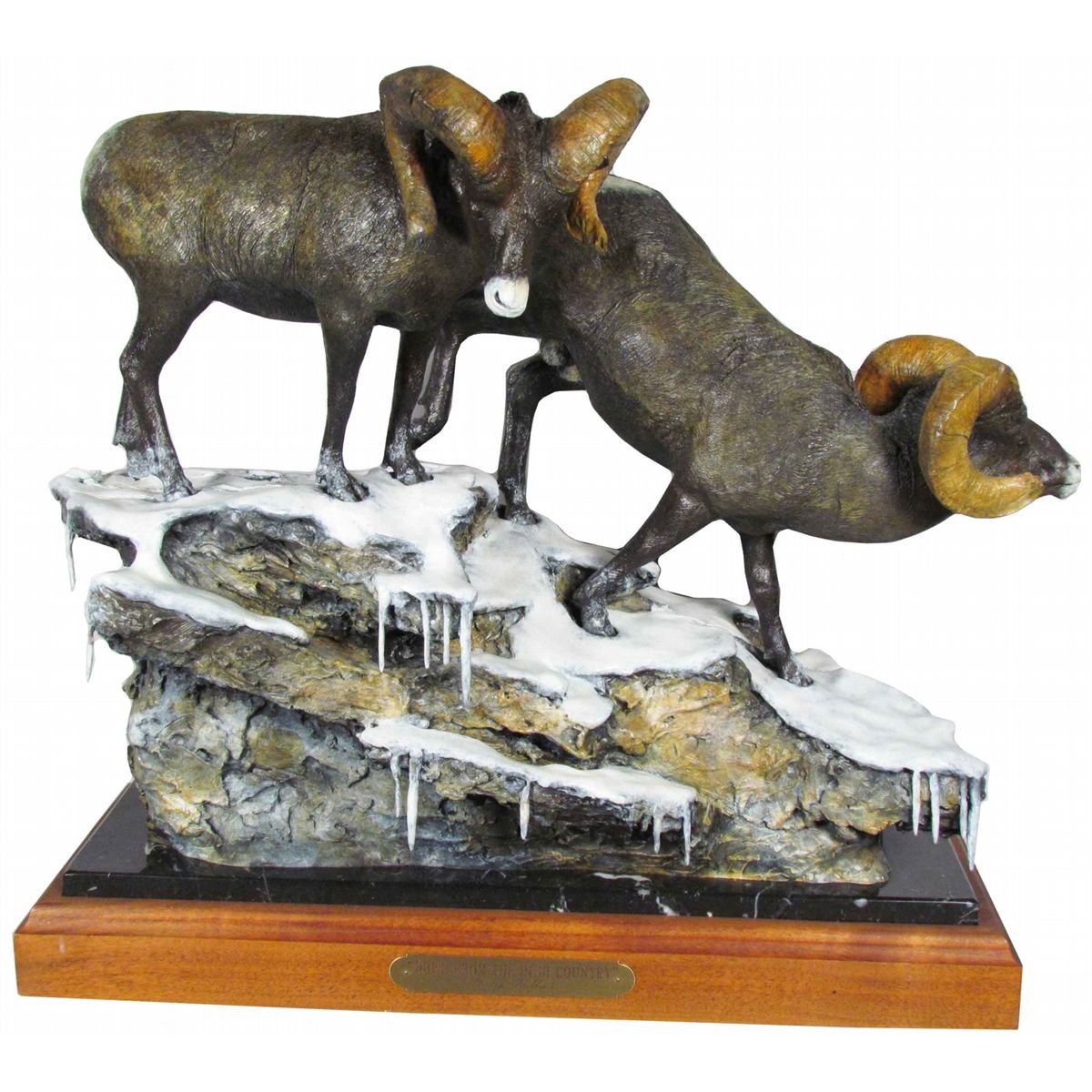 Craig Phillips Bronze Sculpture entitled, "Down From the High Country". Wildlife and western artist Craig Phillips works with field observations to achieve great accuracy and feeling for his big game sculptures. 18 1/2 X 17 X 11 inches overall.