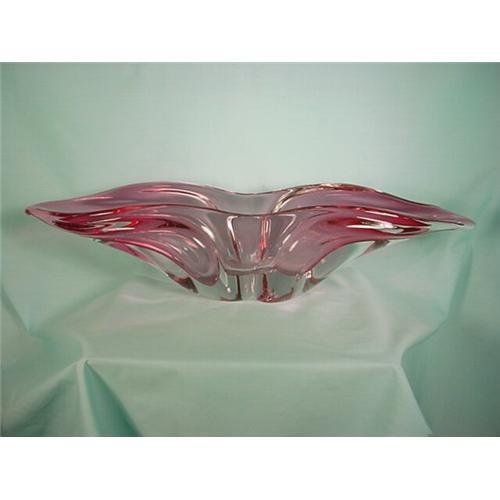 20 3/4 inch Long ** 4 1/4 inch Wide ** Very Heavy Blown Glass in a Pale Cranberry Color ** Believed to be Murano Glass ** Excellent Condition ** Age Unknown