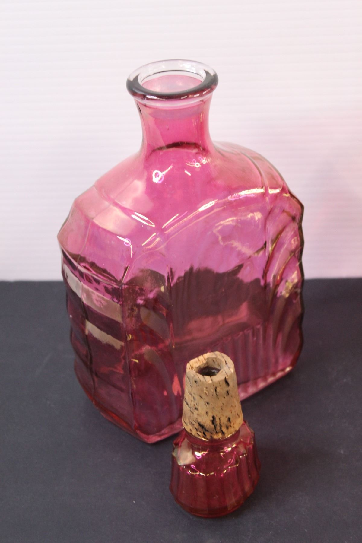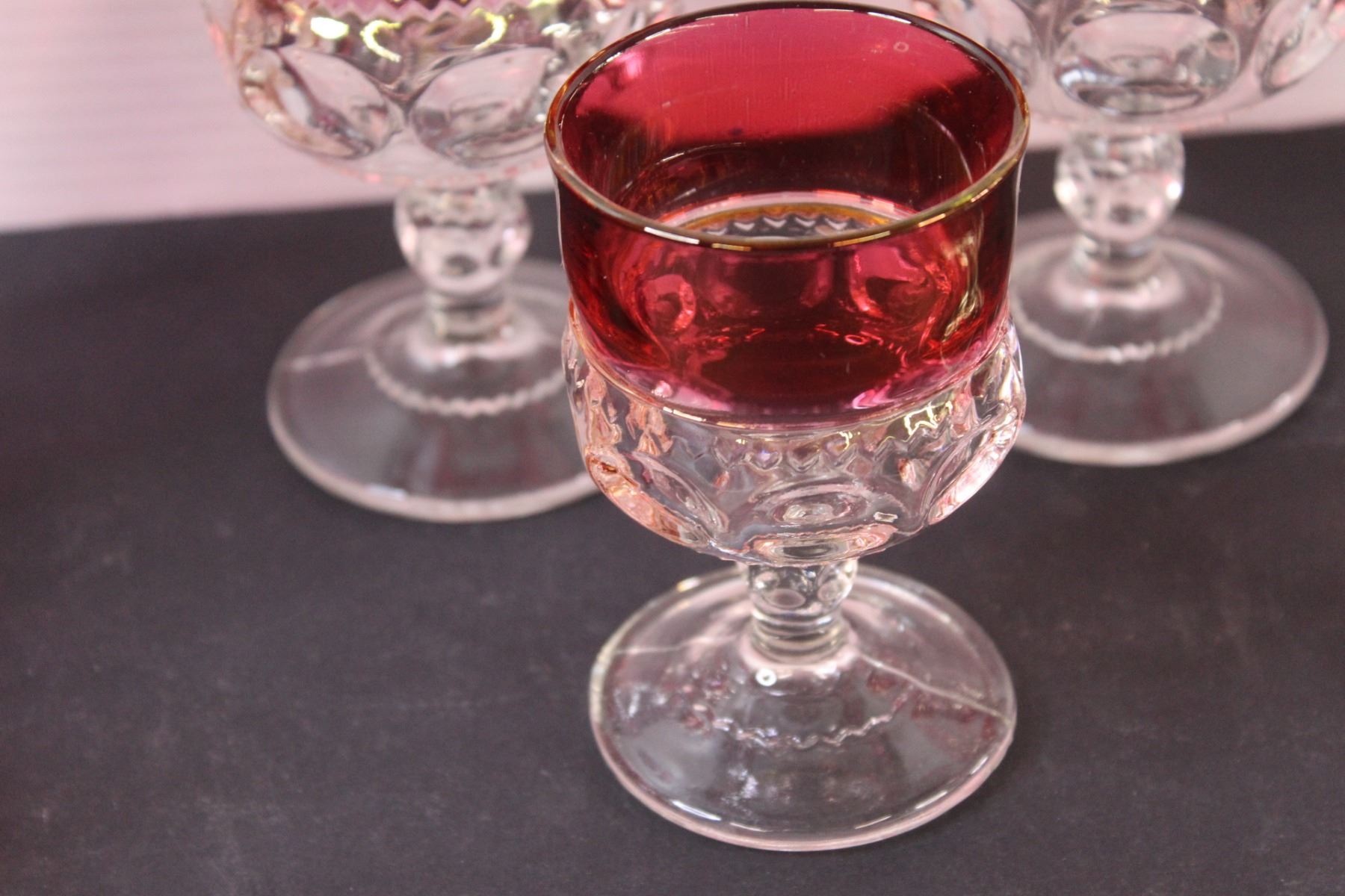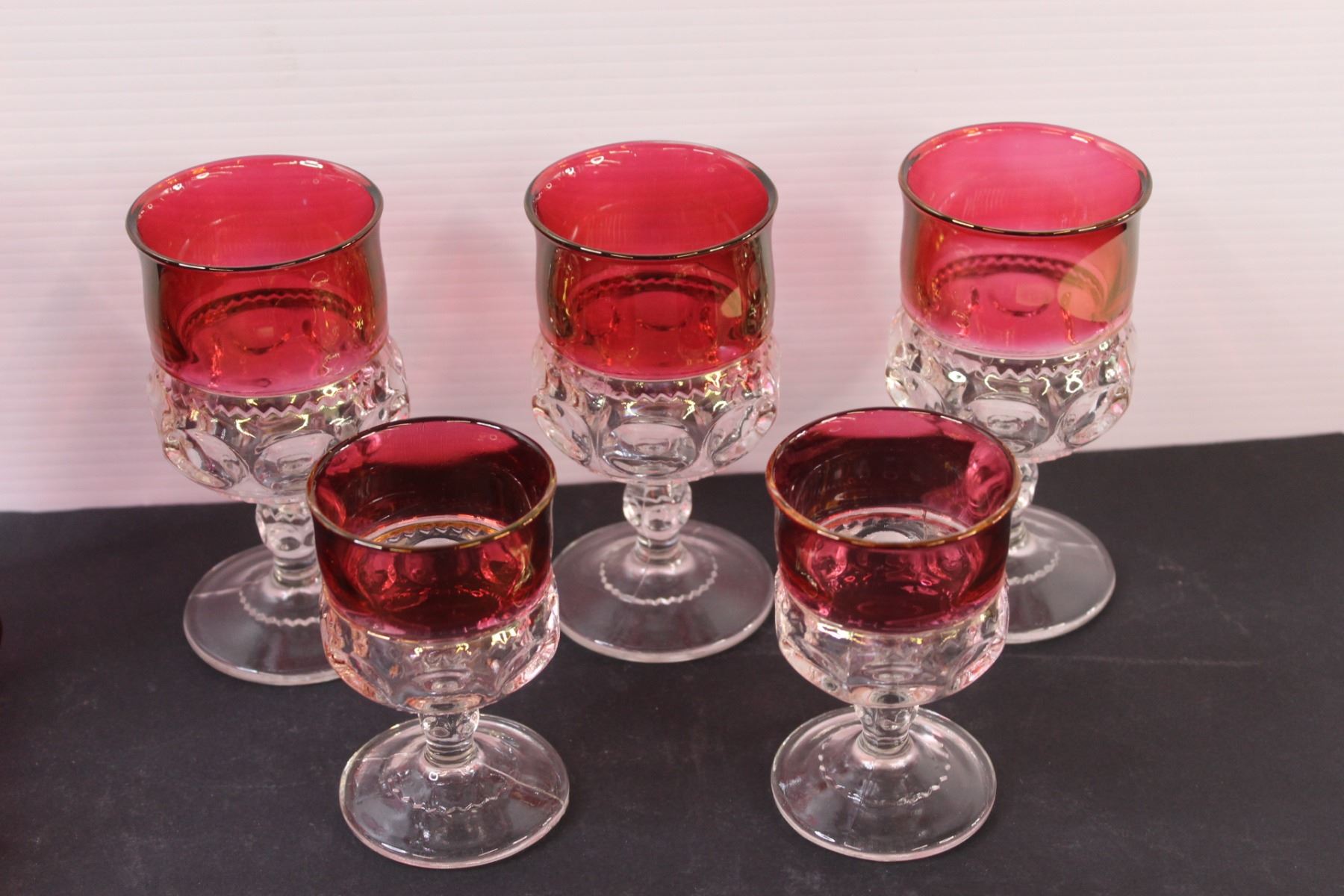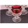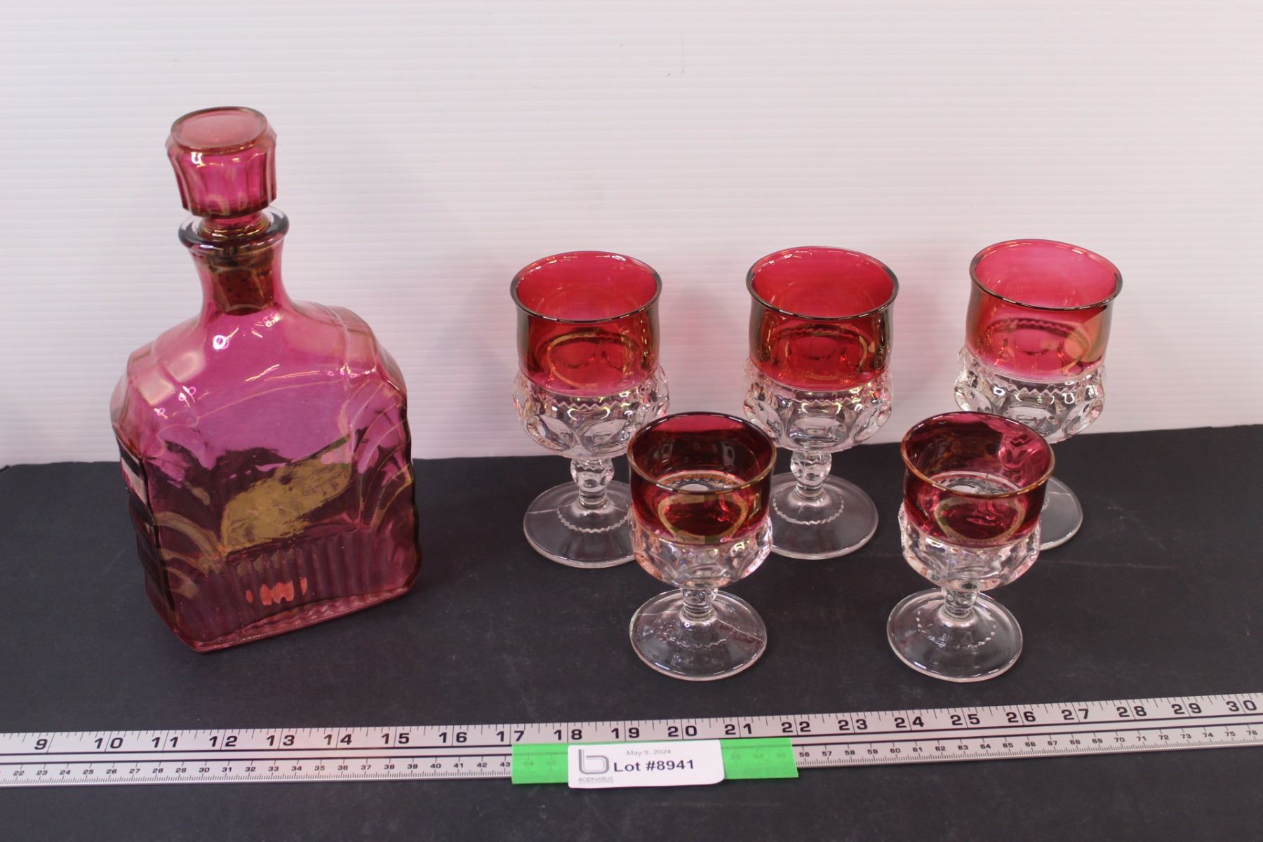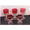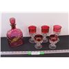 Cranberry Decanter & (3) Large Goblets (2) Medium Goblets Set