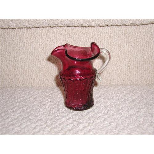 Early Cranberry Glass Pitcher. Actual body of pitcher is red while the handle is clear. No chips or cracks. Excellent for its age.