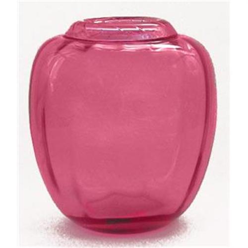 Produced during the early years of the 20th century this Victorian cranberry glass flower vase features a bulbous shape with a ribbed panel optic design. Measuring 5 3/4 inches tall x 16 inches inches in circumference and is in excellent condition