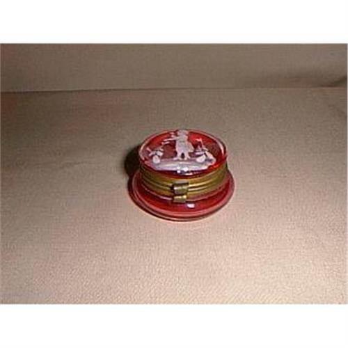 Cranberry Mary Gregory patchpot in perfect condition. 1.5" diameter. Hinged lid opens easily. Circa 1880s.