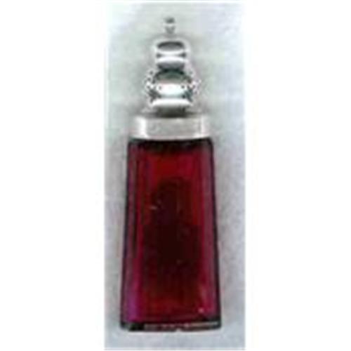 Cranberry Glass and Sterling Sugar Shaker. Small chip on base. Top is marked "Sterling"