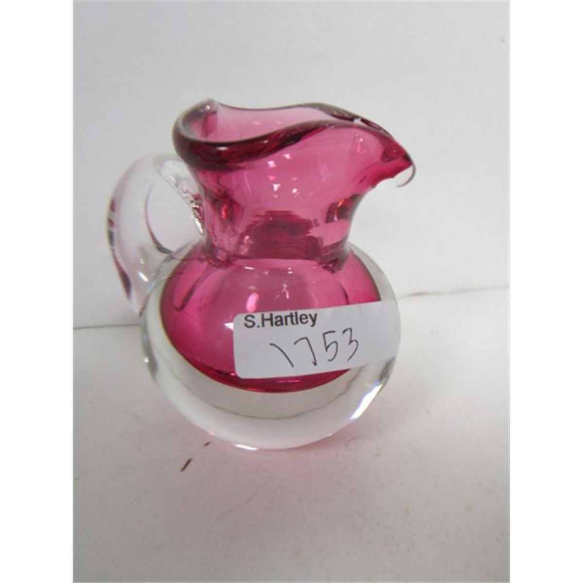 Cranberry to clear mini pitcher 3 1/4 Pauly and Co-ground polished bottom heavy glass
