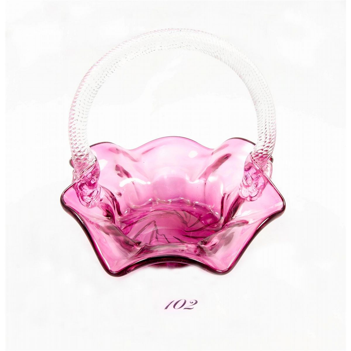 Cranberry vase handled candy dish