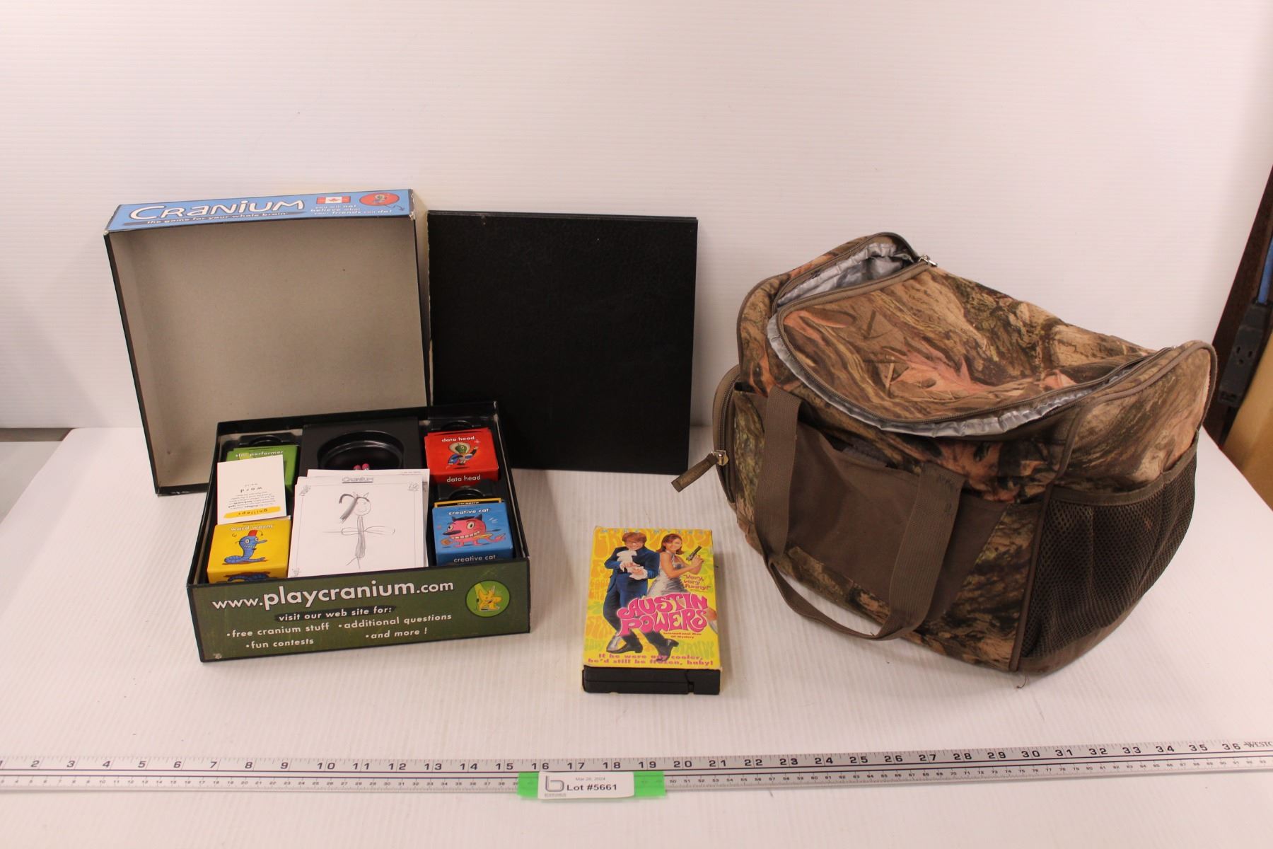 Cranium Canadian Edition Board Game (Ripped Board), Austin Powers VHS Cassette & Used Camo Lunch Bag (smells like smoke)