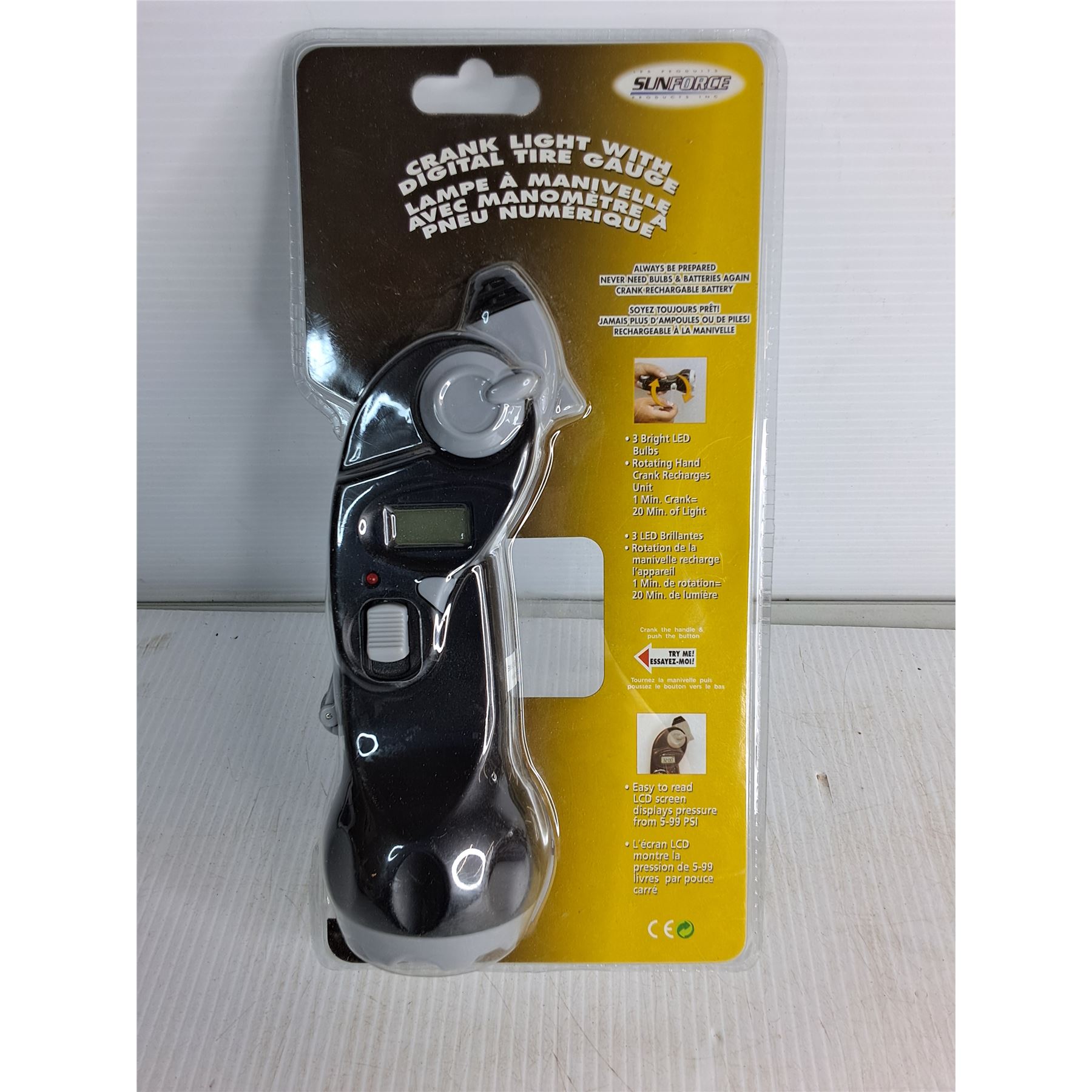 Crank Light With Digital Tire Gauge & Various Flashlights- As Is