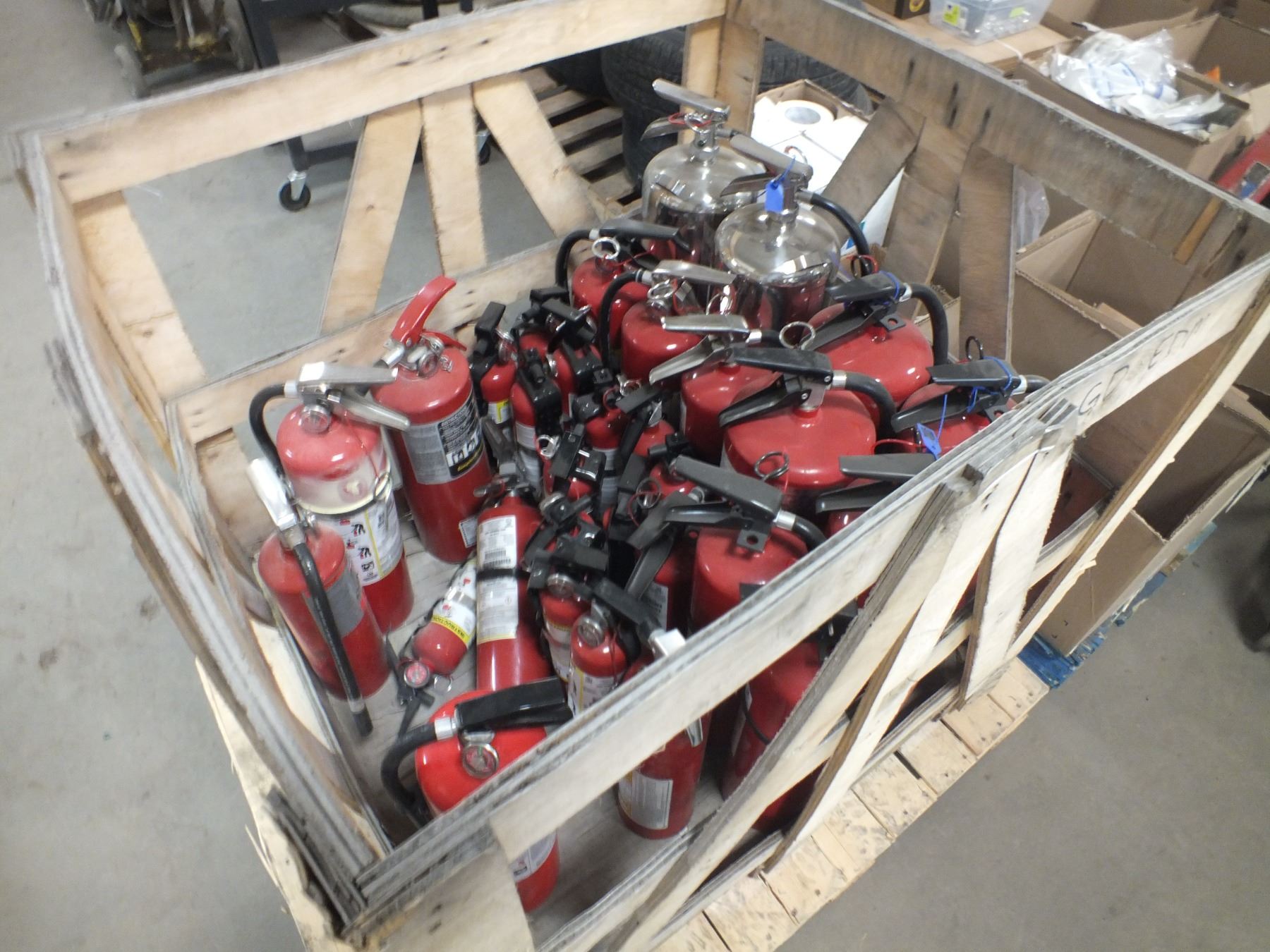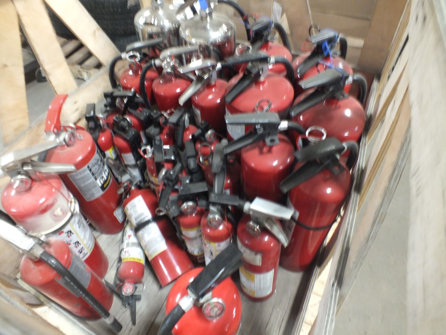 Crate Of Fire Extinguisher's, 31 pcs, assorted sizes...used