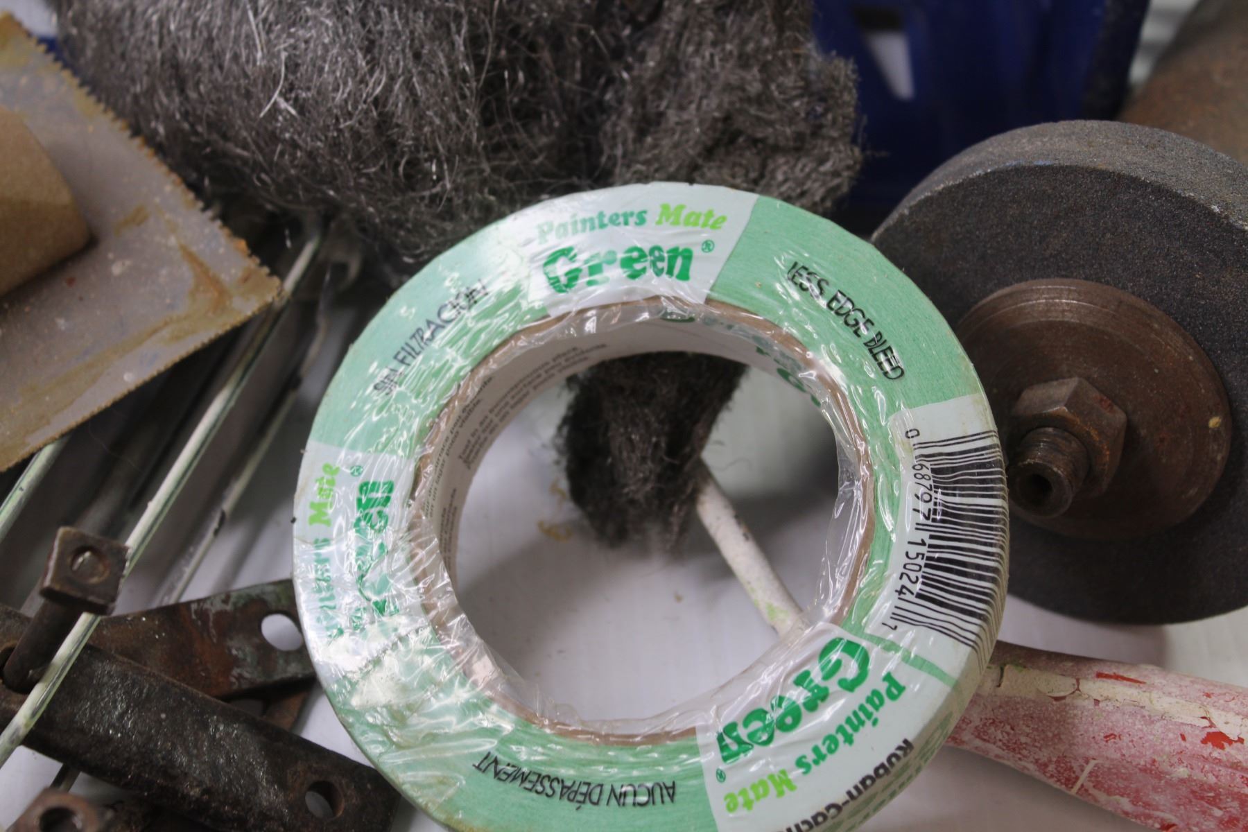 Crate of Assorted Reno/Cement Tools - Masking Tape - Misc. Items