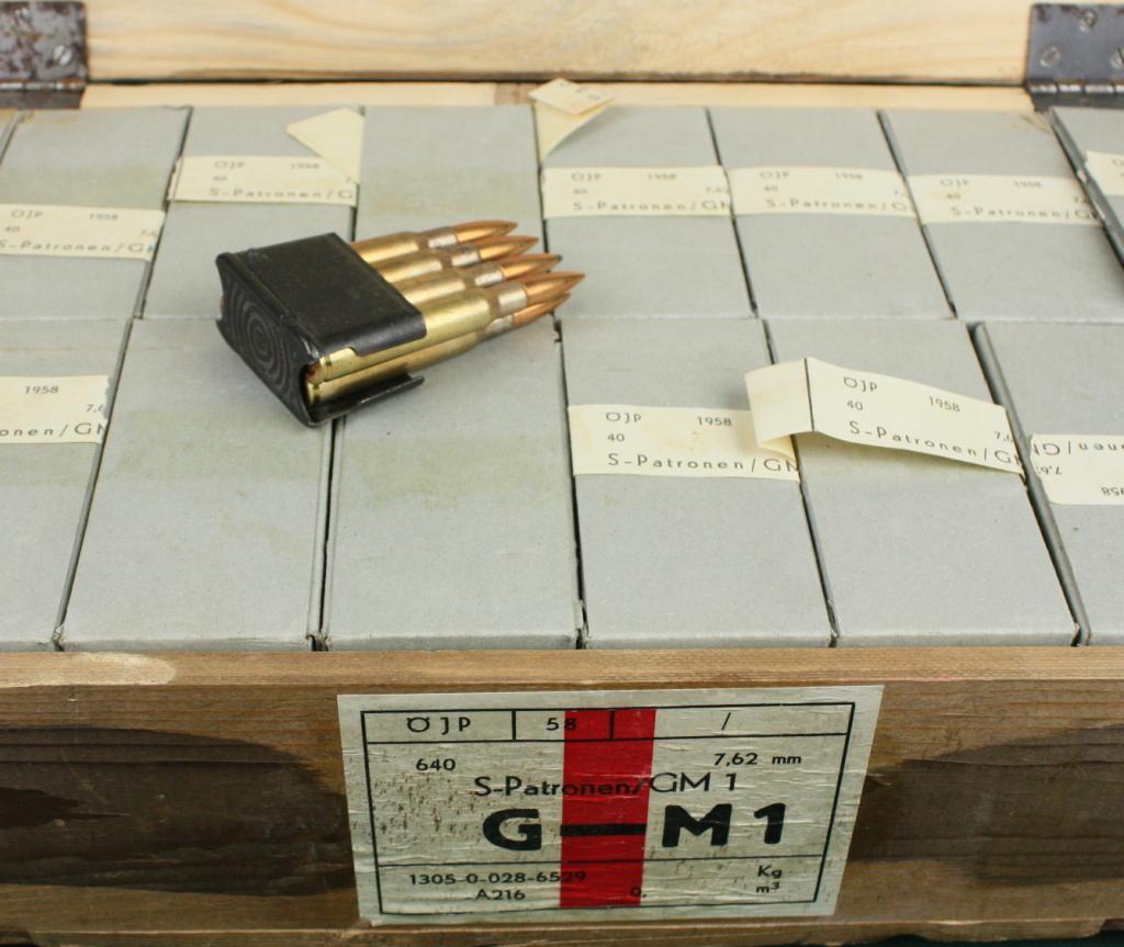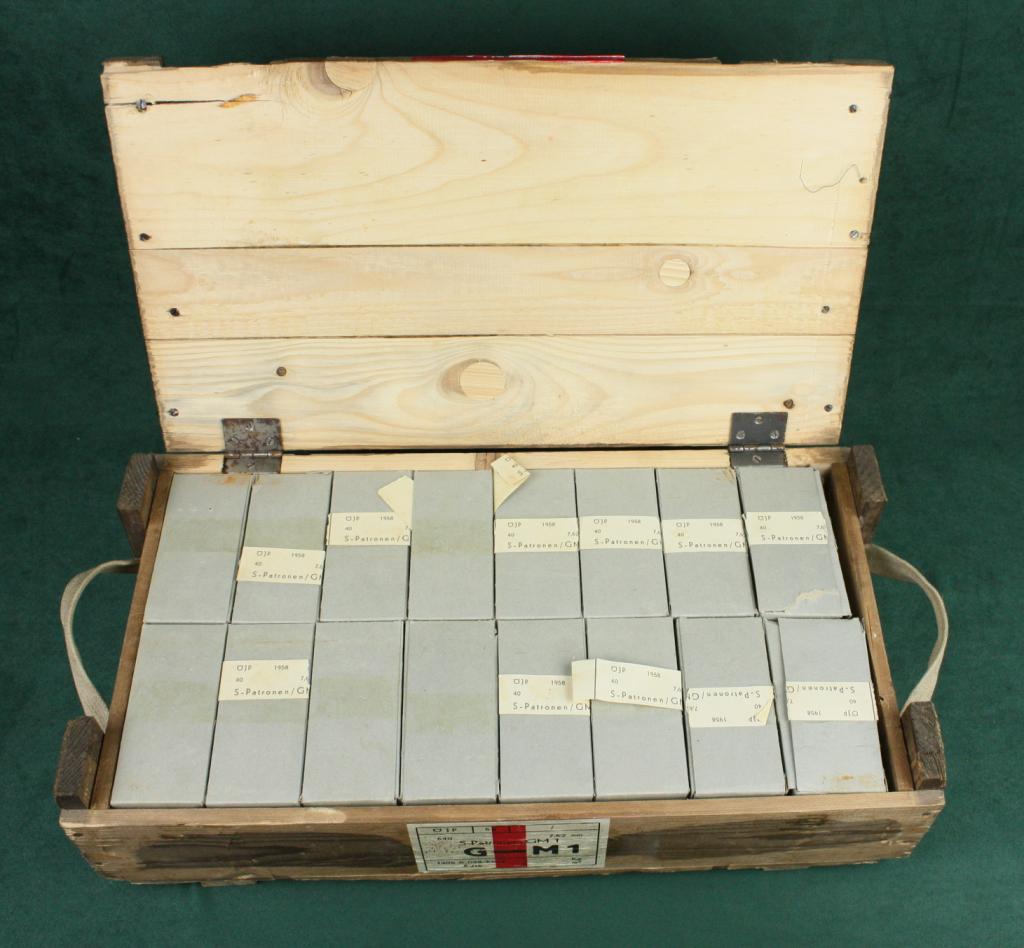 Crate of Greek surplus 30-06 ammunition,  approx. 16 boxes with Garand clips.  Est.:   $100-$200.