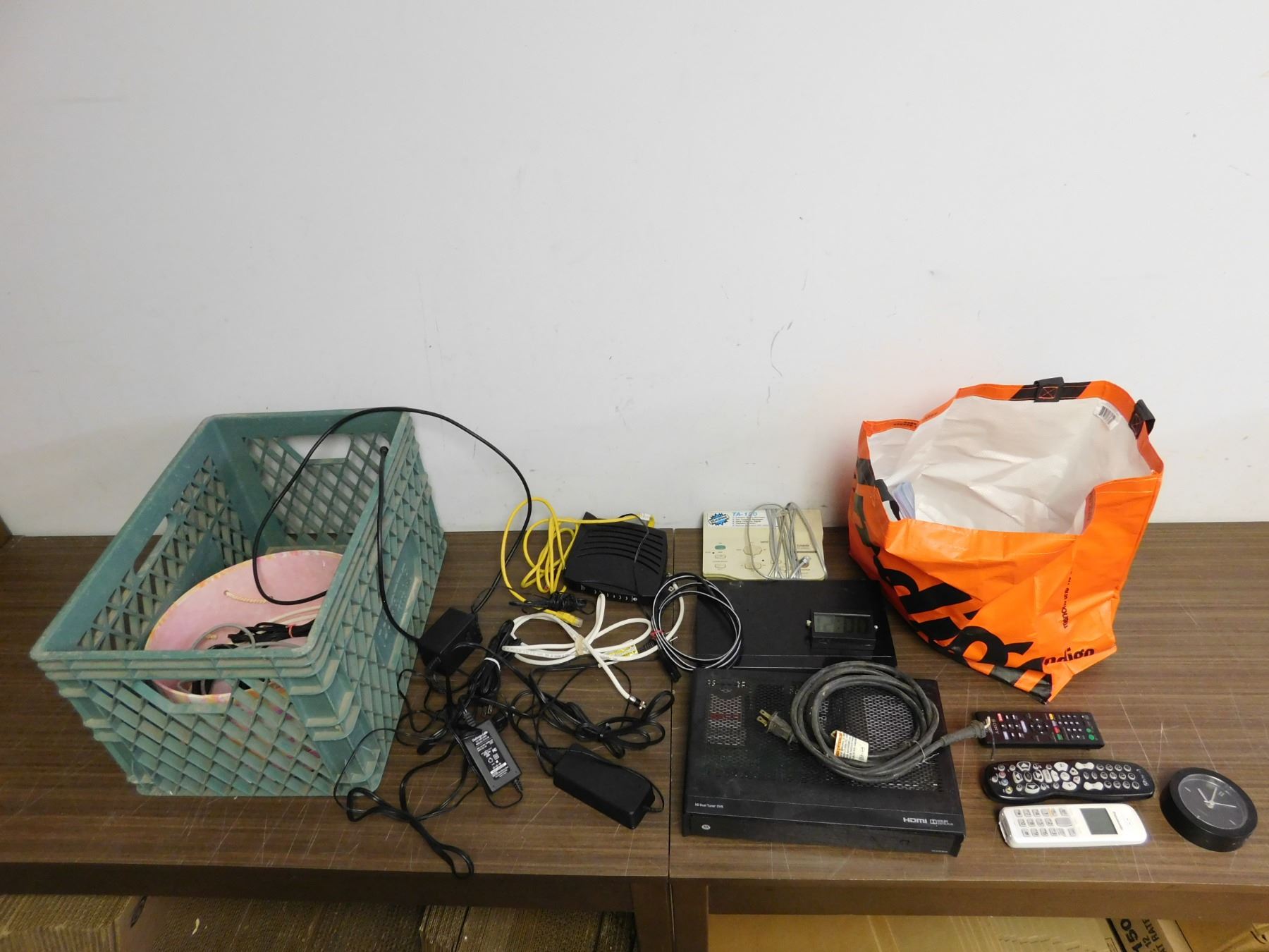Crate of Misc Electronics Remotes, Parts Pieces