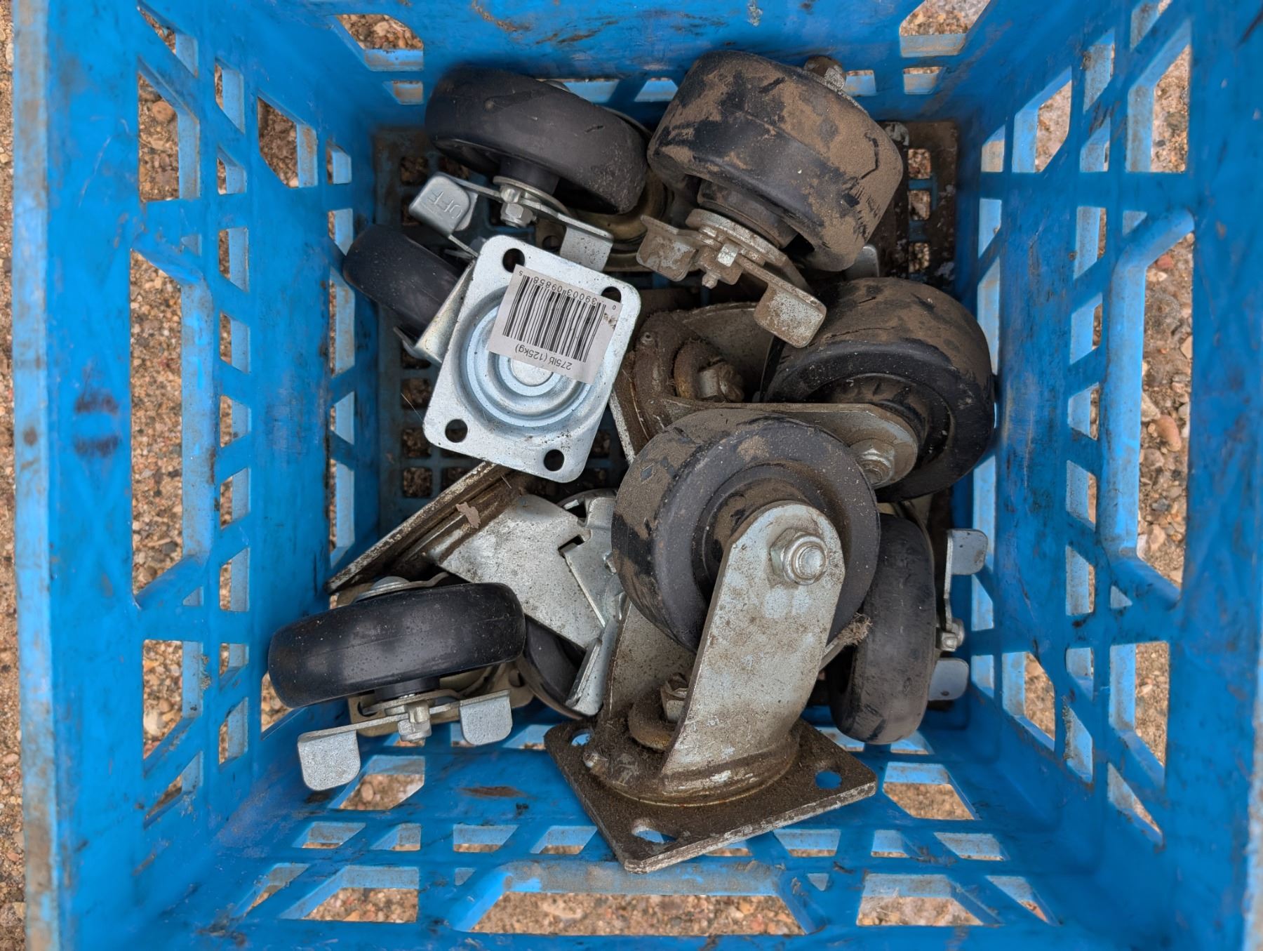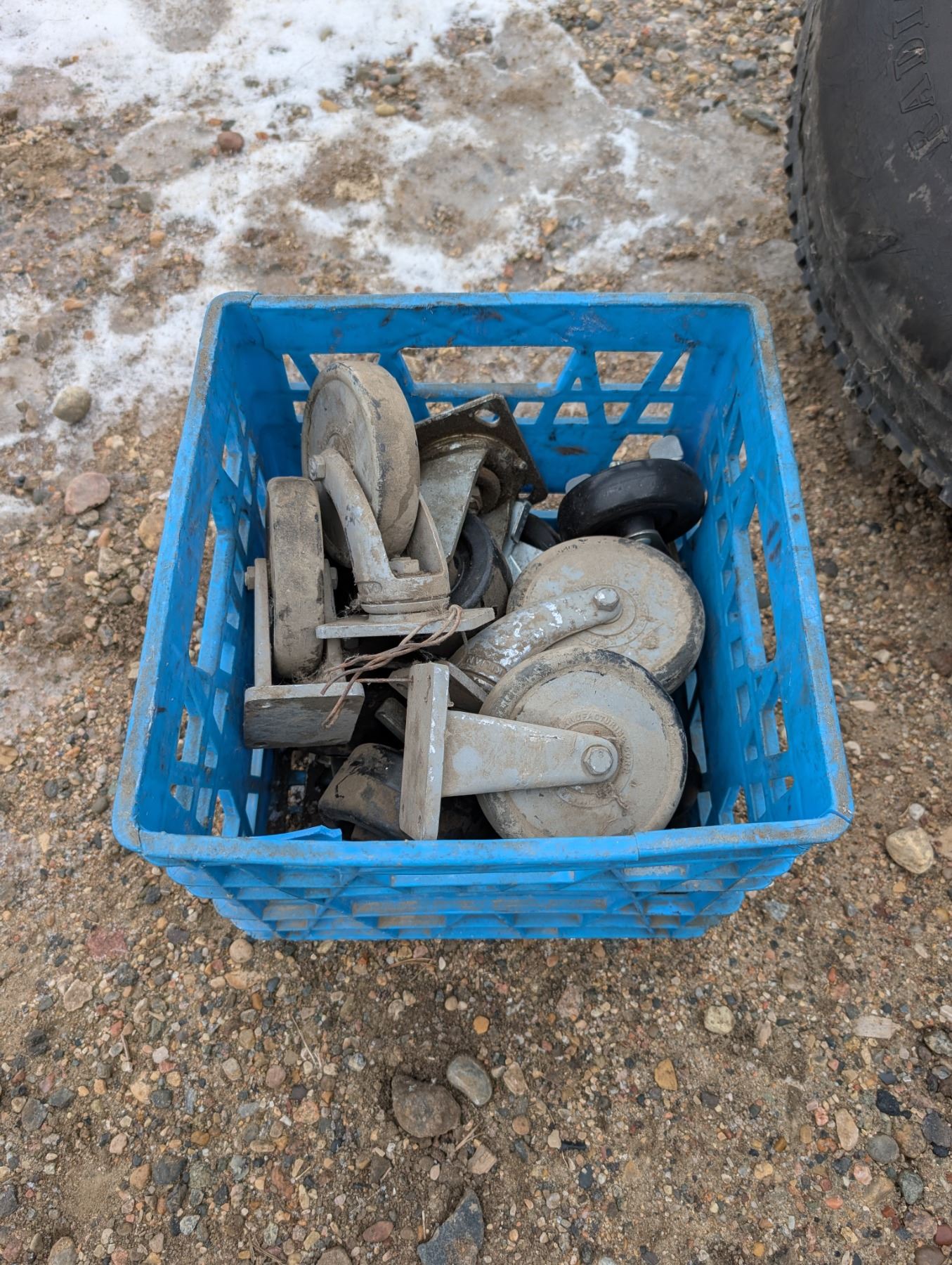Crate of Rolling Cart Wheels