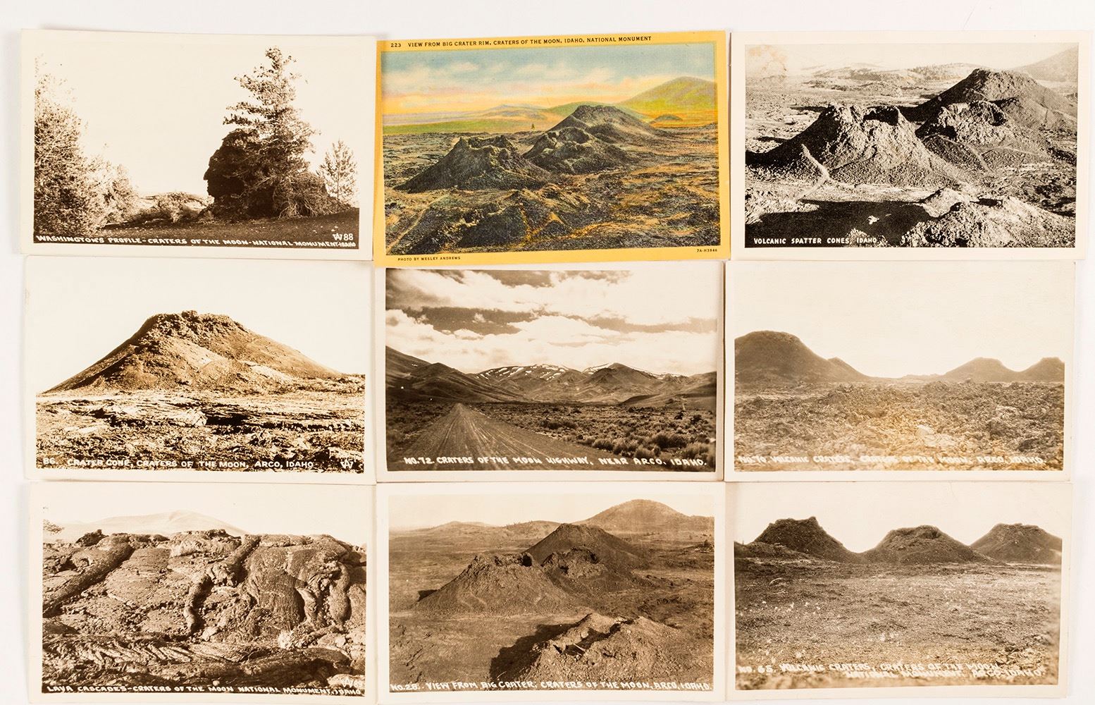 Lot of nine - eight black & white RPCs. c1930's. All unused. Please see photos online. Date: Location: Crates of the Moon, Idaho HWAC # 54538