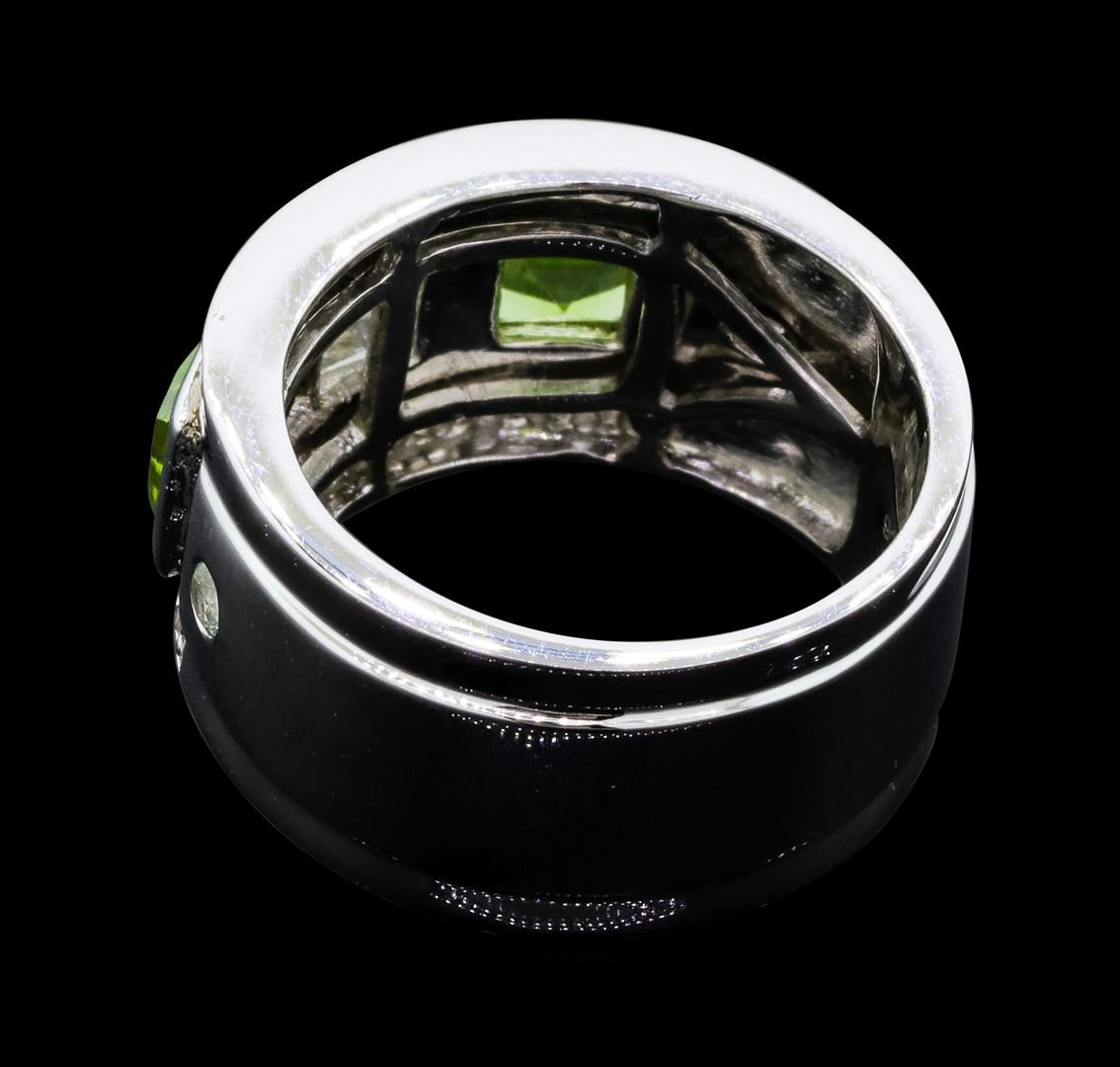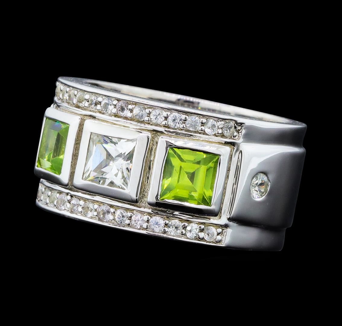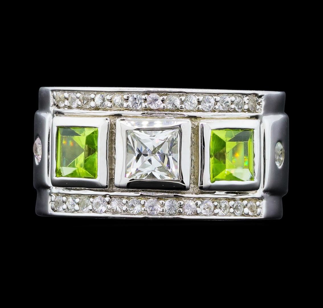 From the brand whose products have inspired creative expression for more than 110 years comes this beautiful ring by Crayola. This stunning piece of jewelry reflects the image and colorful personality of the Crayola brand. The Ring features .925 Silver With Rhodium weighing 6.30gr containing Peridot (AAA) Square 4.00mm - 2Pcs + Natural White Sapphire Square 4.00mm - 1Pcs + Natural White Sapphire Round 2.00mm - 2Pcs + Natural White Sapphire Round 1.20mm - 24Pcs (With J BACK). Total Peridot weight is 0.60ctw. Total White Sapphire weight is 0.80ctw.