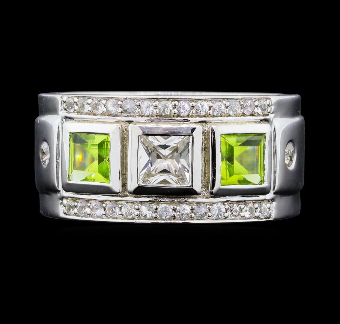 From the brand whose products have inspired creative expression for more than 110 years comes this beautiful ring by Crayola. This stunning piece of jewelry reflects the image and colorful personality of the Crayola brand. The Ring features .925 Silver With Rhodium weighing 6.30gr containing Peridot (AAA) Square 4.00mm - 2Pcs + Natural White Sapphire Square 4.00mm - 1Pcs + Natural White Sapphire Round 2.00mm - 2Pcs + Natural White Sapphire Round 1.20mm - 24Pcs (With J BACK). Total Peridot weight is 0.60ctw. Total White Sapphire weight is 0.80ctw.