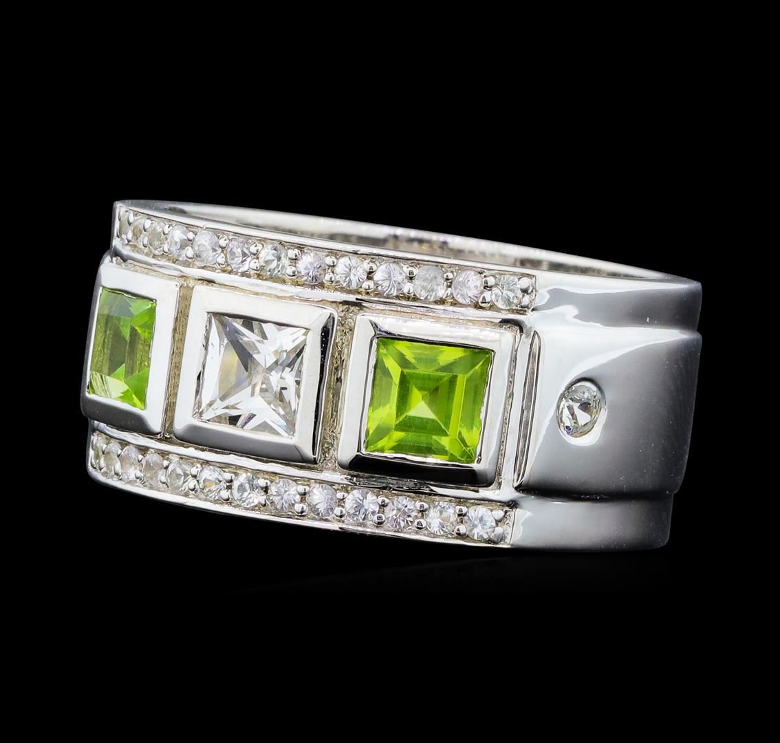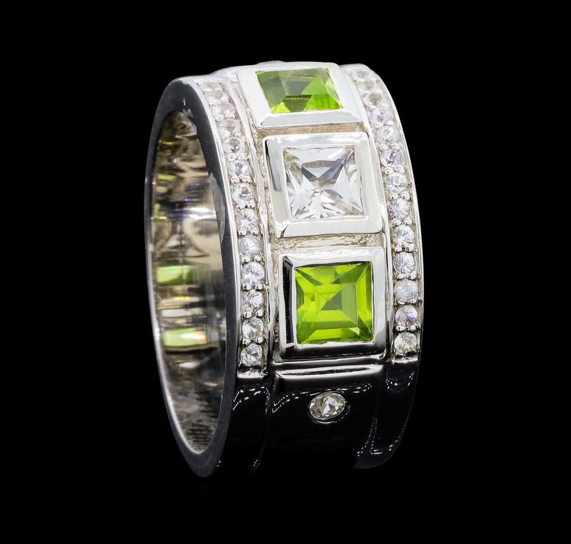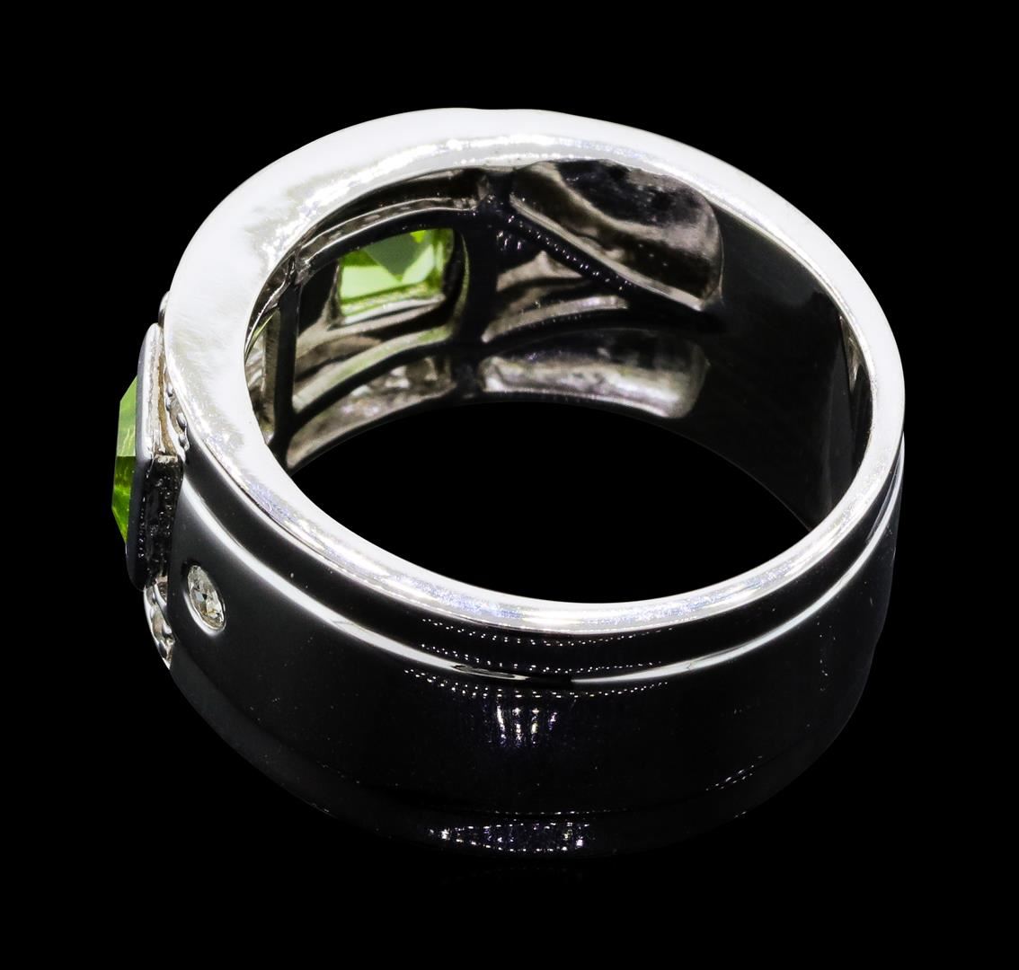 From the brand whose products have inspired creative expression for more than 110 years comes this beautiful ring by Crayola. This stunning piece of jewelry reflects the image and colorful personality of the Crayola brand. The Ring features .925 Silver With Rhodium weighing 6.30gr containing Peridot (AAA) Square 4.00mm - 2Pcs + Natural White Sapphire Square 4.00mm - 1Pcs + Natural White Sapphire Round 2.00mm - 2Pcs + Natural White Sapphire Round 1.20mm - 24Pcs (With J BACK). Total Peridot weight is 0.60ctw. Total White Sapphire weight is 0.80ctw.