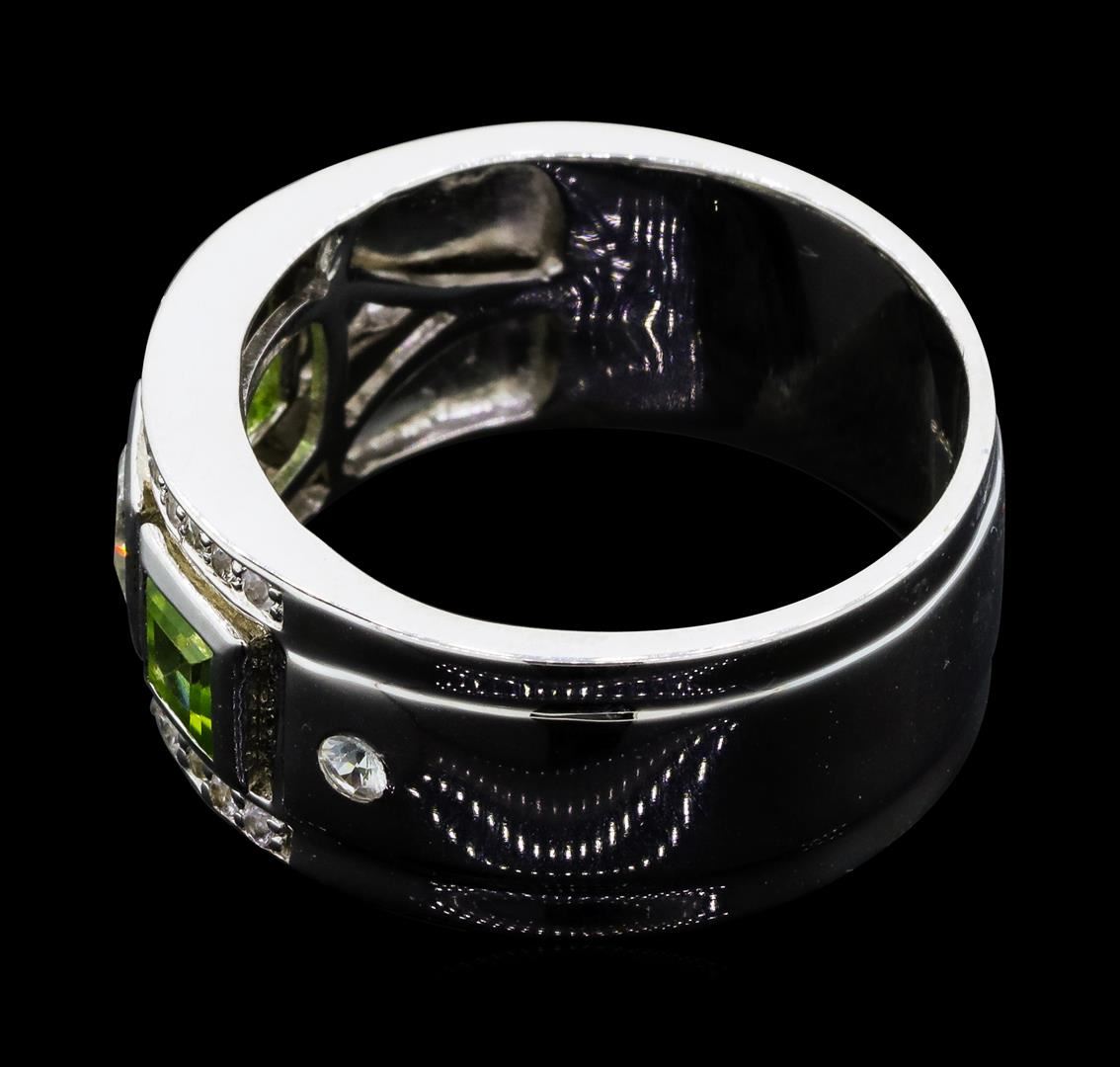 From the brand whose products have inspired creative expression for more than 110 years comes this beautiful ring by Crayola. This stunning piece of jewelry reflects the image and colorful personality of the Crayola brand. The Ring features .925 Silver With Rhodium weighing 6.30gr containing Peridot (AAA) Square 4.00mm - 2Pcs + Natural White Sapphire Square 4.00mm - 1Pcs + Natural White Sapphire Round 2.00mm - 2Pcs + Natural White Sapphire Round 1.20mm - 24Pcs (With J BACK). Total Peridot weight is 0.60ctw. Total White Sapphire weight is 0.80ctw.