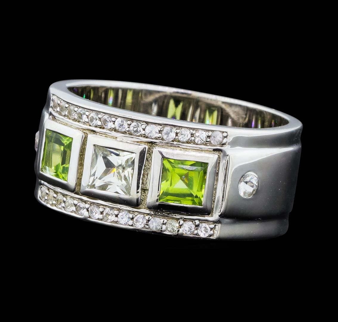 From the brand whose products have inspired creative expression for more than 110 years comes this beautiful ring by Crayola. This stunning piece of jewelry reflects the image and colorful personality of the Crayola brand. The Ring features .925 Silver With Rhodium weighing 6.30gr containing Peridot (AAA) Square 4.00mm - 2Pcs + Natural White Sapphire Square 4.00mm - 1Pcs + Natural White Sapphire Round 2.00mm - 2Pcs + Natural White Sapphire Round 1.20mm - 24Pcs (With J BACK). Total Peridot weight is 0.60ctw. Total White Sapphire weight is 0.80ctw.