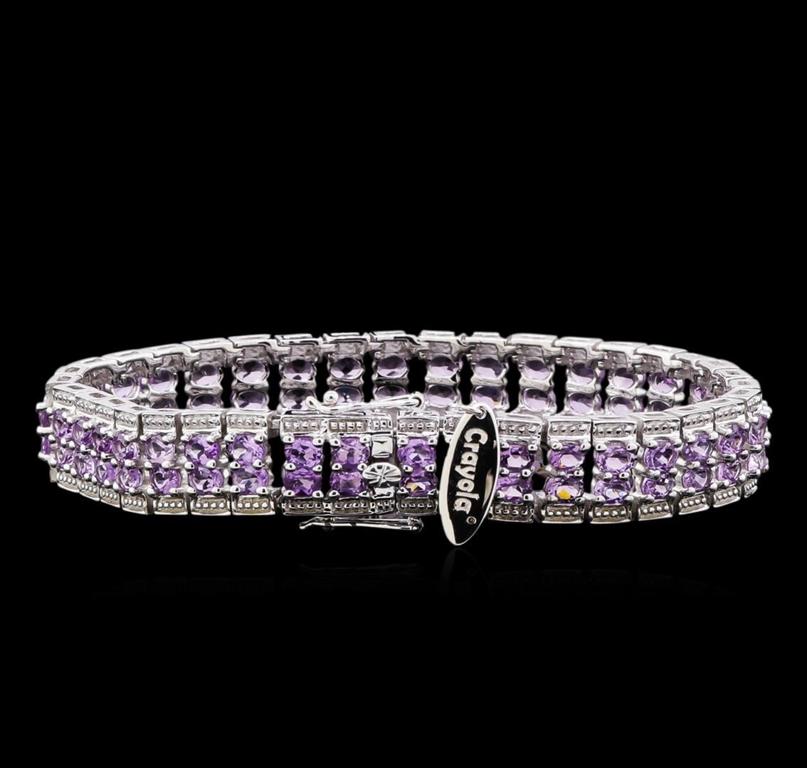 From the brand whose products have inspired creative expression for more than 110 years comes this beautiful bracelet by Crayola. This stunning piece of jewelry reflects the image and colorful personality of the Crayola brand. The Bracelet features .925 Silver With Rhodium weighing 35.444oz containing Blush Dark Pink Amethyst (AAA) Oval 4x3mm - 76Pcs. Total Pink Amethyst weight is 10.34ct. Measures: 7.75".