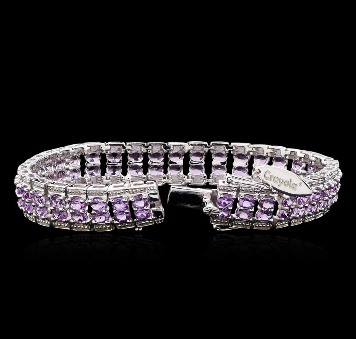 From the brand whose products have inspired creative expression for more than 110 years comes this beautiful bracelet by Crayola. This stunning piece of jewelry reflects the image and colorful personality of the Crayola brand. The Bracelet features .925 Silver With Rhodium weighing 35.444oz containing Blush Dark Pink Amethyst (AAA) Oval 4x3mm - 76Pcs. Total Pink Amethyst weight is 10.34ct. Measures: 7.75".