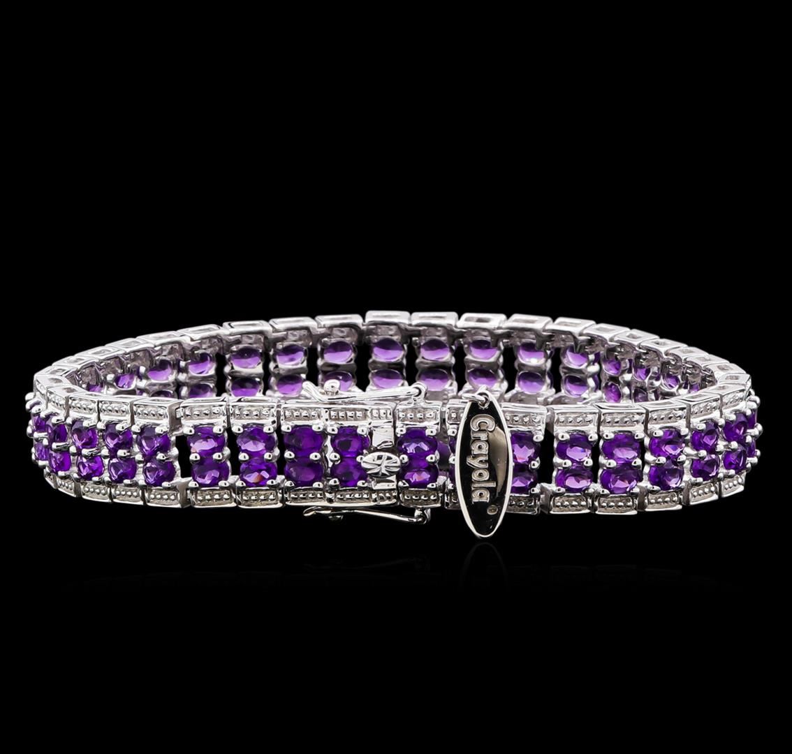 From the brand whose products have inspired creative expression for more than 110 years comes this beautiful bracelet by Crayola. This stunning piece of jewelry reflects the image and colorful personality of the Crayola brand. The Bracelet features .925 Silver With Rhodium weighing 35.444oz containing Purple Heart Amethyst (AAA) Oval 4x3mm - 76Pcs. Total Amethyst weight is 12.16ct. Measures: 7.75".