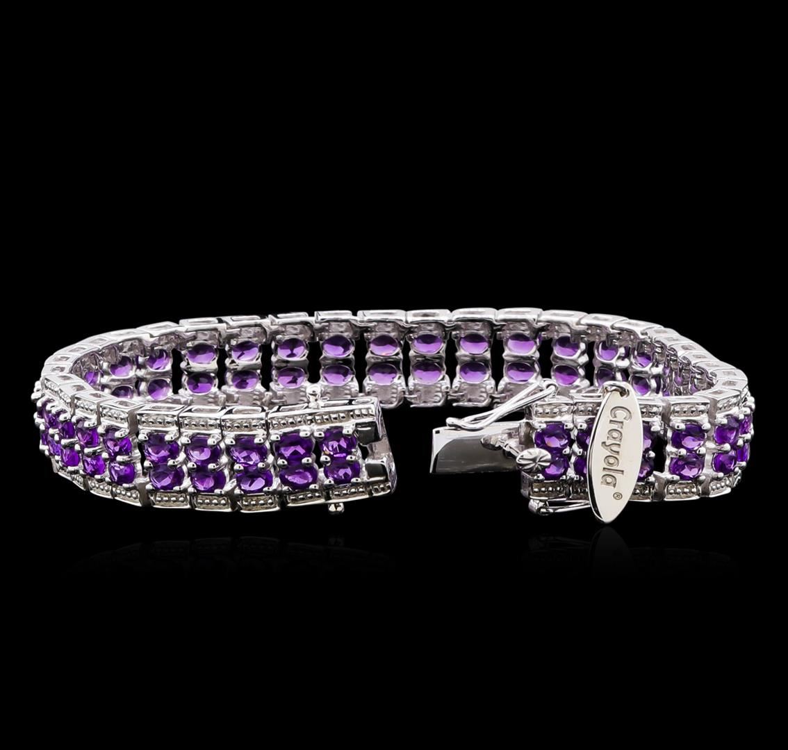 From the brand whose products have inspired creative expression for more than 110 years comes this beautiful bracelet by Crayola. This stunning piece of jewelry reflects the image and colorful personality of the Crayola brand. The Bracelet features .925 Silver With Rhodium weighing 35.444oz containing Purple Heart Amethyst (AAA) Oval 4x3mm - 76Pcs. Total Amethyst weight is 12.16ct. Measures: 7.75".