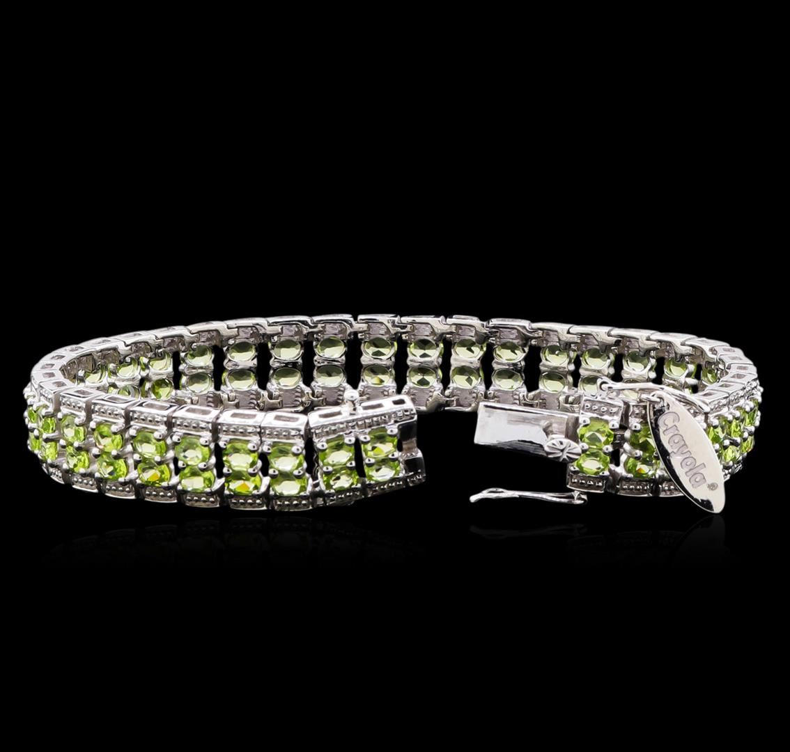 From the brand whose products have inspired creative expression for more than 110 years comes this beautiful bracelet by Crayola. This stunning piece of jewelry reflects the image and colorful personality of the Crayola brand. The Bracelet features .925 Silver With Rhodium weighing 35.444oz containing Granny Smith Apple Peridot (AAA) Oval 4x3mm - 76Pcs. Total Peridot weight is 12.16ct. Measures: 7.75".