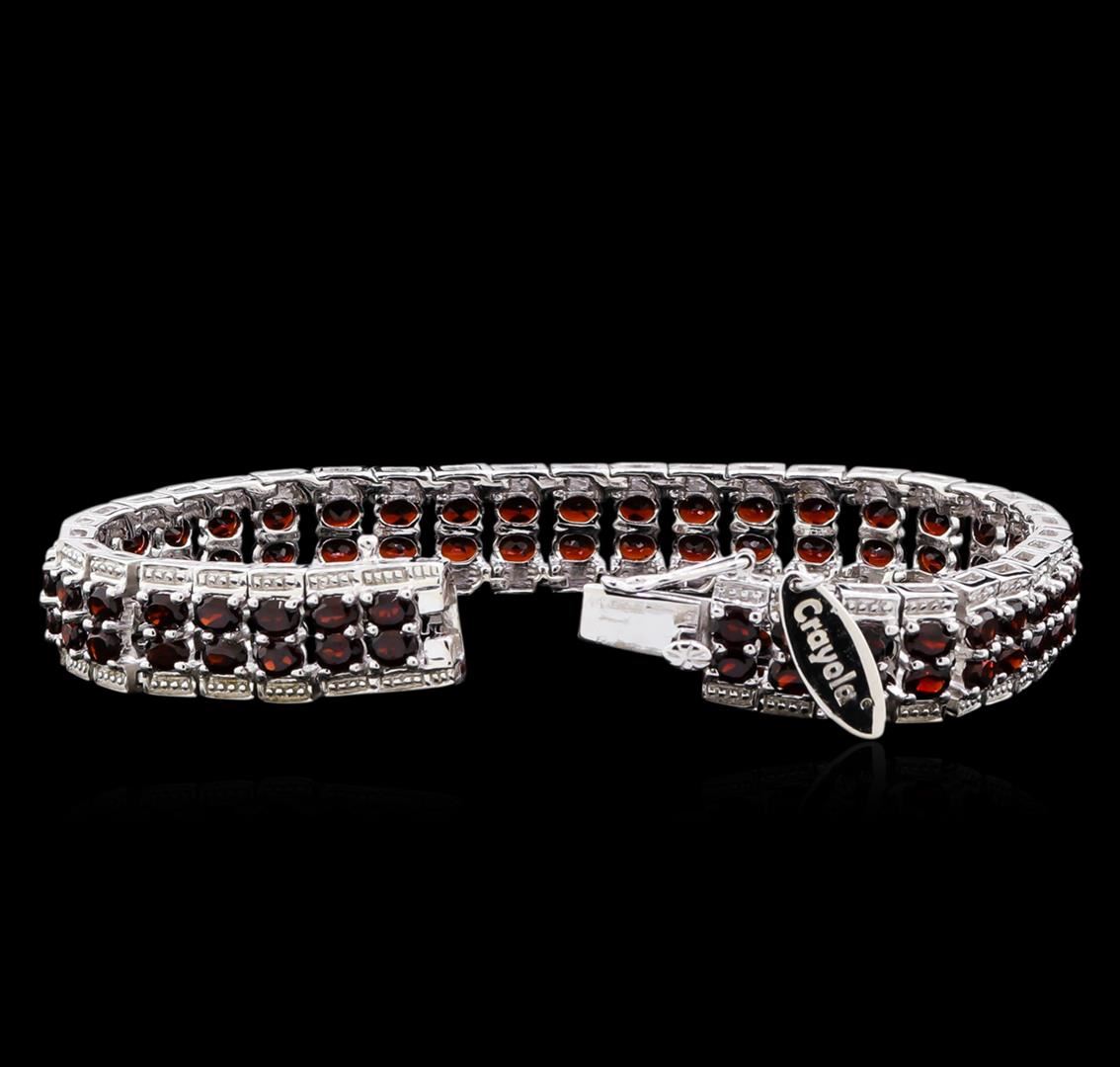From the brand whose products have inspired creative expression for more than 110 years comes this beautiful bracelet by Crayola. This stunning piece of jewelry reflects the image and colorful personality of the Crayola brand. The Bracelet features .925 Silver With Rhodium weighing 35.444oz containing Maroon Garnet (AAA) Oval 4x3mm - 76Pcs. Total Garnet weight is 16.72ct. Measures: 7.75".