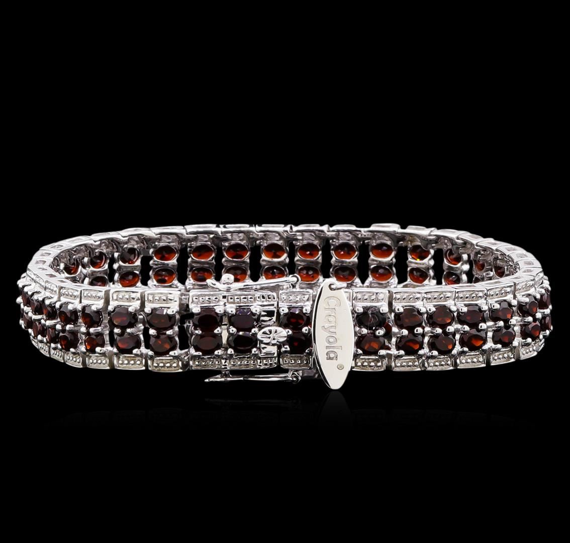 From the brand whose products have inspired creative expression for more than 110 years comes this beautiful bracelet by Crayola. This stunning piece of jewelry reflects the image and colorful personality of the Crayola brand. The Bracelet features .925 Silver With Rhodium weighing 35.444oz containing Maroon Garnet (AAA) Oval 4x3mm - 76Pcs. Total Garnet weight is 16.72ct. Measures: 7.75".