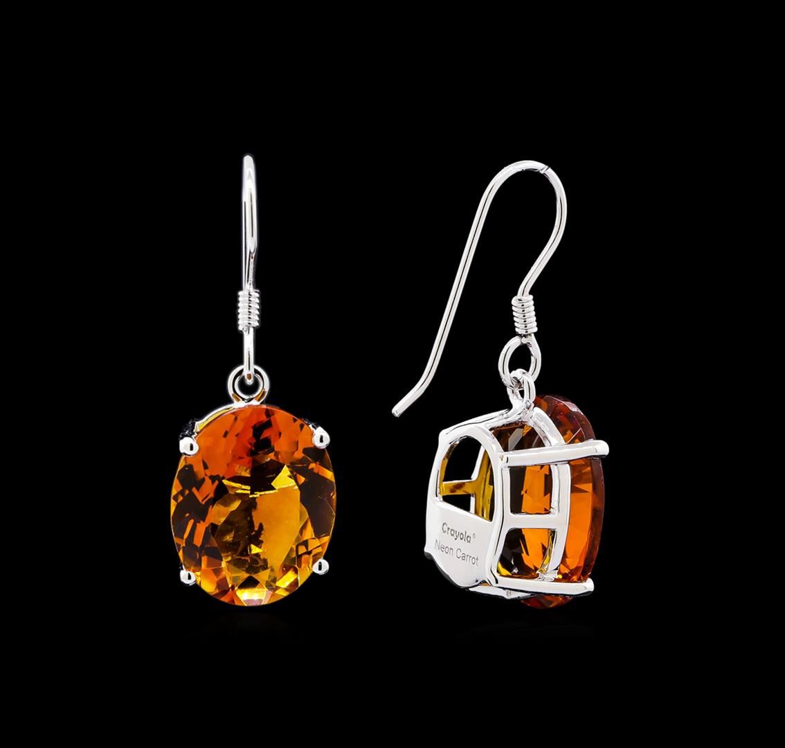 From the brand whose products have inspired creative expression for more than 110 years comes this beautiful pair of earrings by Crayola. This stunning piece of jewelry reflects the image and colorful personality of the Crayola brand. The Earrings features 14K White Gold weighing 9.25oz containing Neon Carrot Citrine (AAA) Oval Bezel Setting with open back 15x12mm - 2Pcs with laser engraved Crayola logo. Total Citrine weight is 17.6ct.