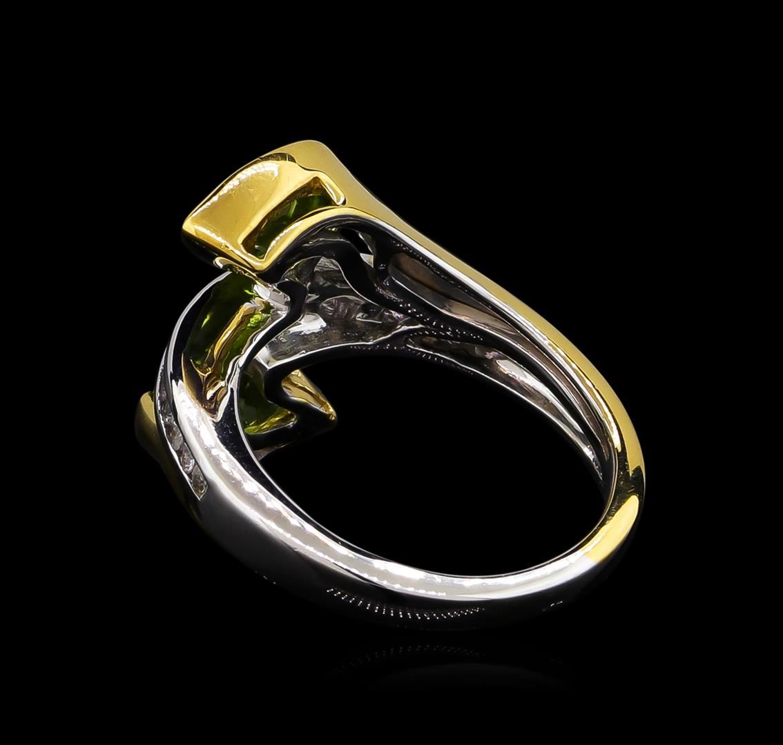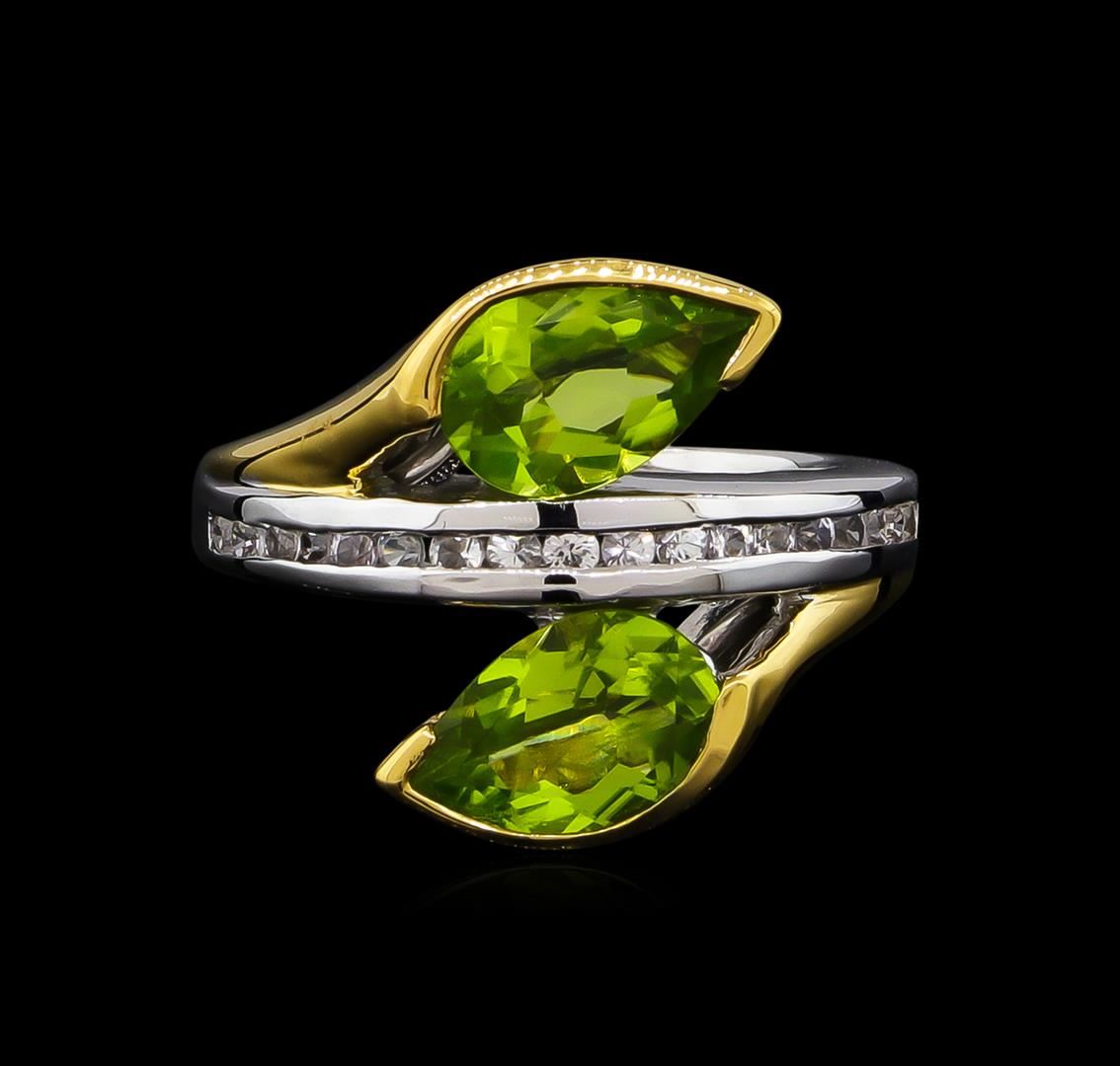 From the brand whose products have inspired creative expression for more than 110 years comes this beautiful ring by Crayola. This stunning piece of jewelry reflects the image and colorful personality of the Crayola brand. The Ring features .925 Silver With Rhodium Two-Tone weighing 4.41oz containing Granny Smith Apple Peridot (AAA) Pears 9x6mm - 2Pcs + Natural White Sapphire Round 1.50mm - 18Pcs (With J BACK & Yellow Pan Rhodium). Total Peridot weight is 2.2ct. Total White Sapphire weight is 0.31ct.